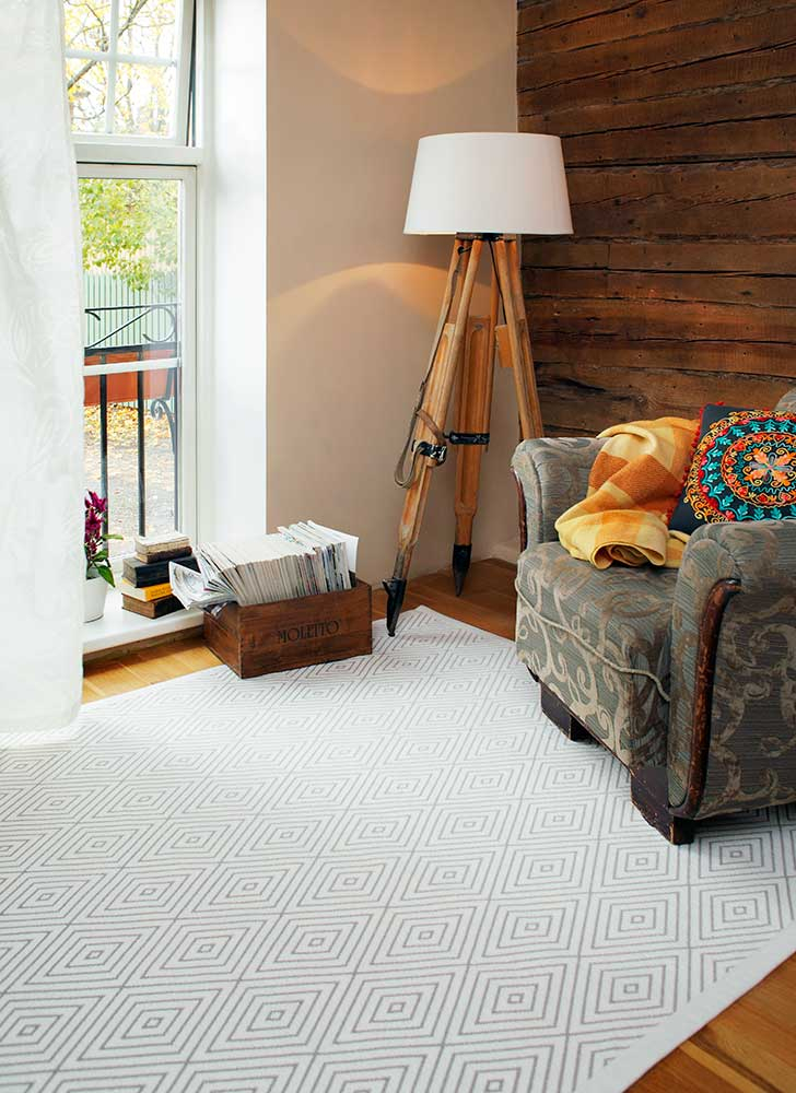 Kahepoolne smartWeave® vaip on valmistatud naturaalsed puuvillast. Mõlemad pooled on võrdväärselt kasutatavad. Vaiba üks külg on mustriline ja teine triibuline.