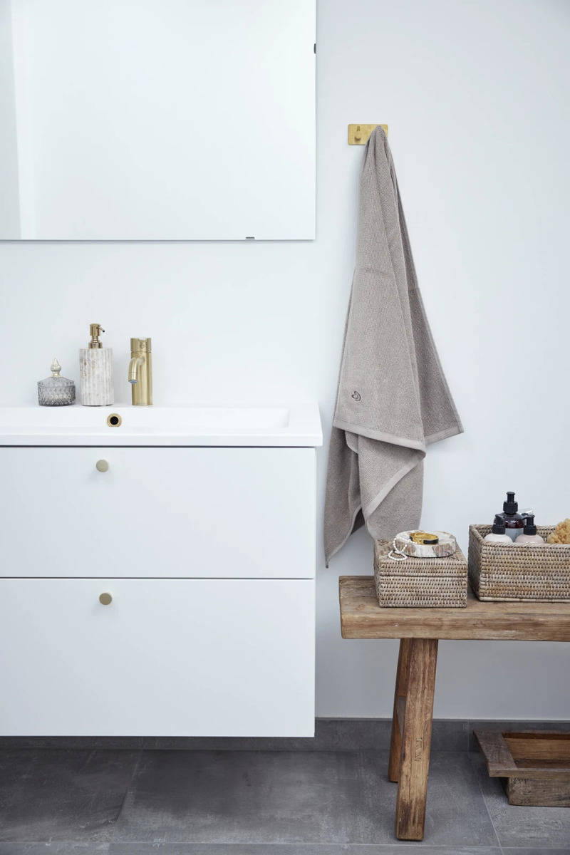 Tänu kvaliteetsele viimistlusele ja vastupidavale õmblustööle kestab Molli rätik aastaid. Komplektis on ka sobivas toonis dušikonks, mis muudab rätiku riputamise lihtsaks.