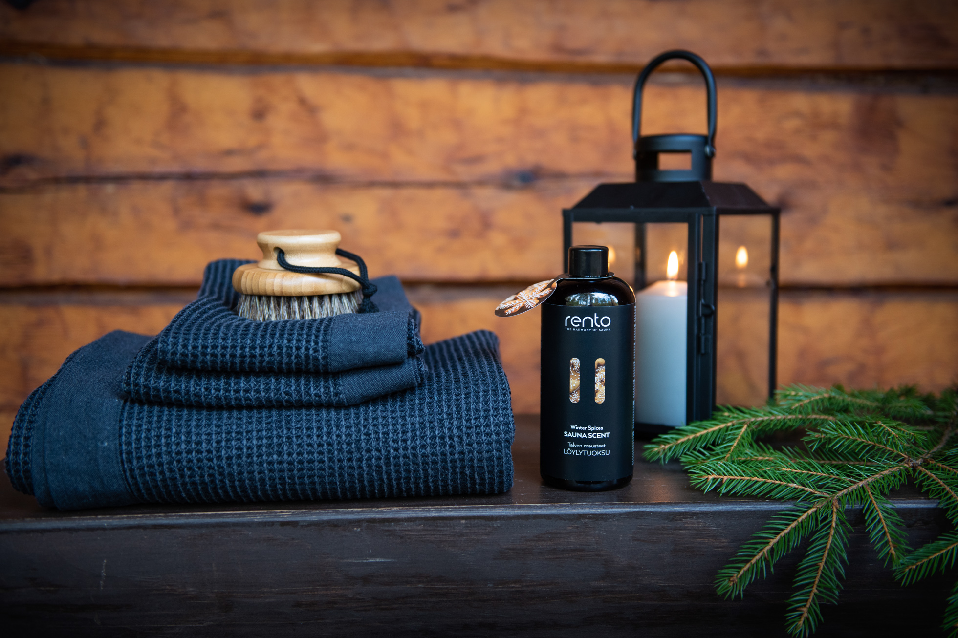 Sauna ja vannitoa tarvikud Rento saunalina must/hall 90×180 cm