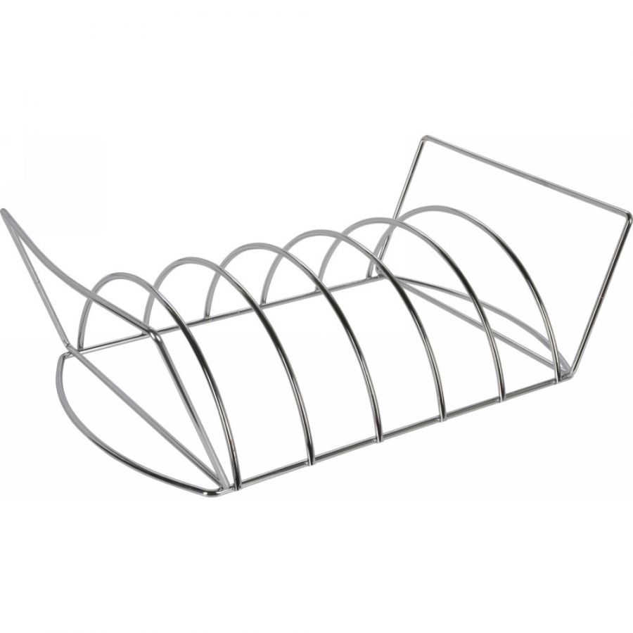 Vaggan BBQ ribialus on ideaalne valik täiuslikult küpsetatud ja mahlaste ribide valmistamiseks. Praktiline disain tagab ühtlase küpsemise ning säilitab liha maitsed ja mahlakuse. Tugevast kroomviimistlusega terasest valmistatud rest mahutab kuni viis ribi, pakkudes stabiilsust ja lihtsat kasutamist.