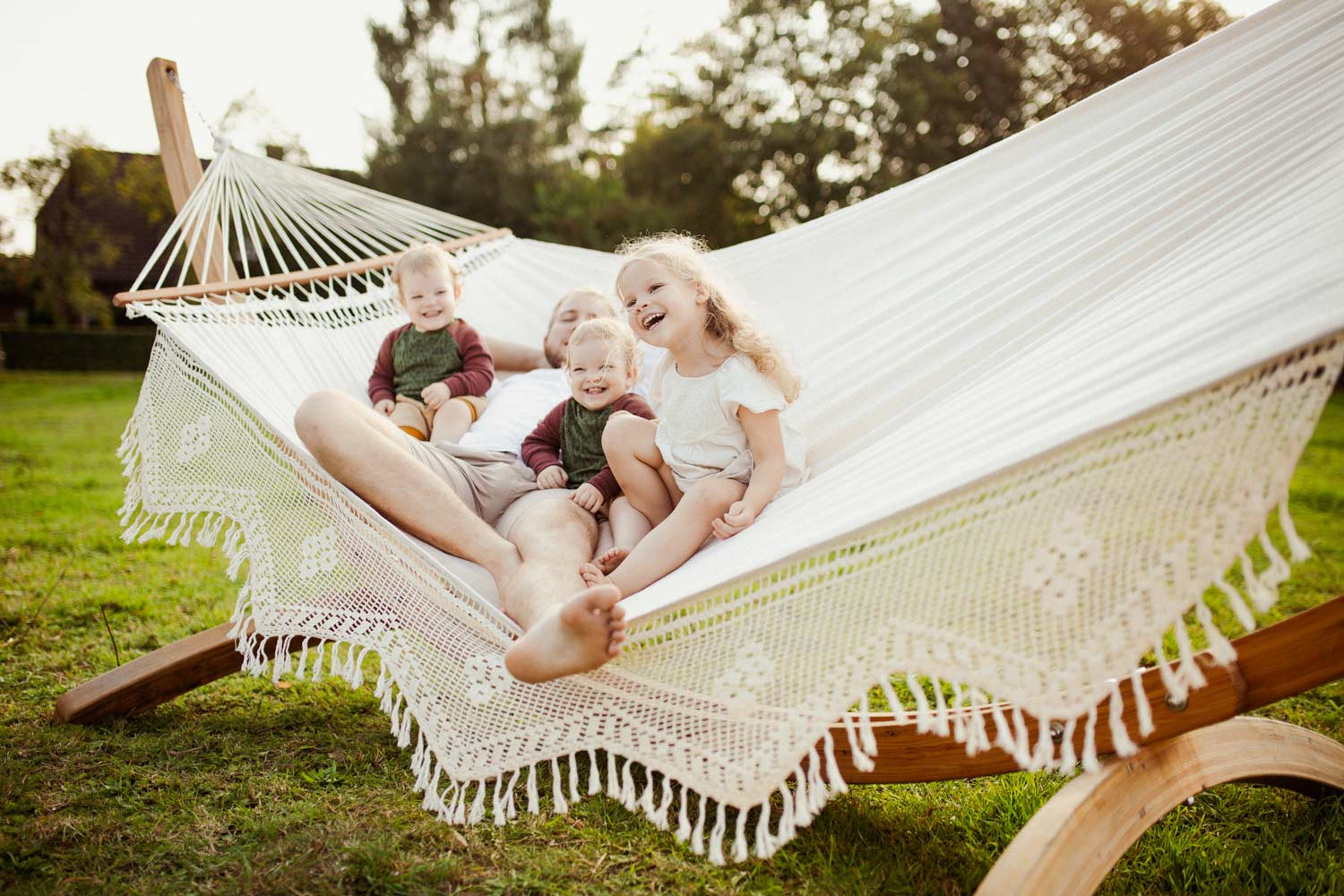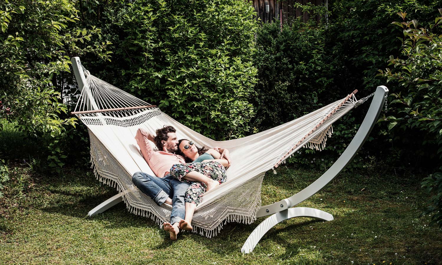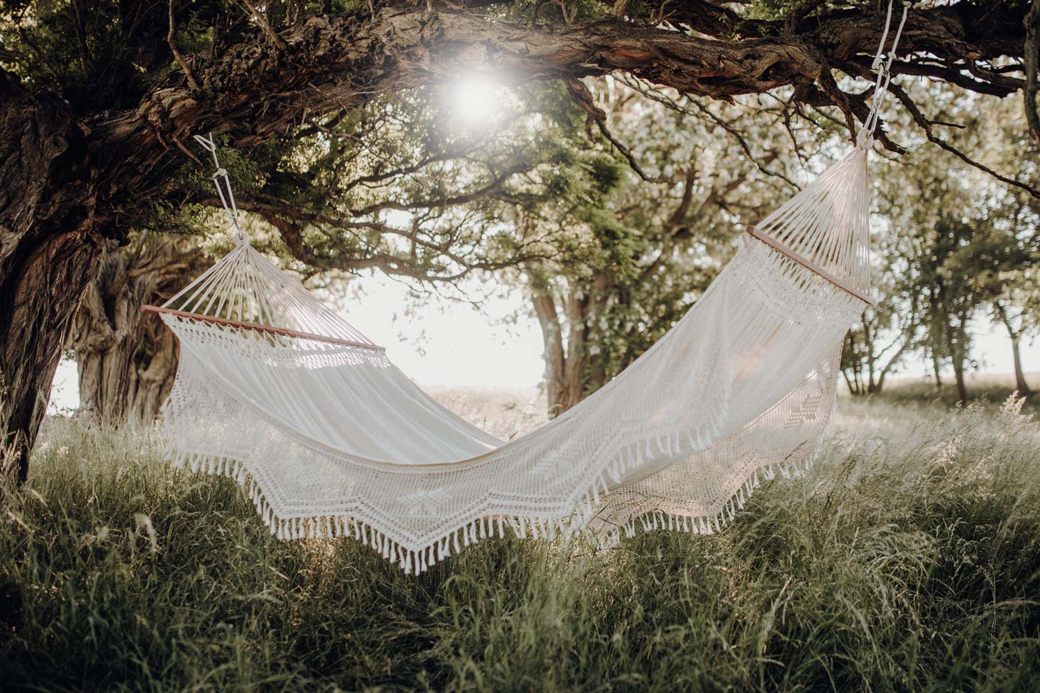 Stabiilsust ja tasakaalu tagavad tugevad, käsitsi kinnitatud riputusnöörid ning looduslikust puidust stabiilsuspulgad. 100% töötlemata puuvillast valmistatud tihe kangas (450 g/m²) on pehme, hingav ja vastupidav, pakkudes erakordset lamamismugavust.