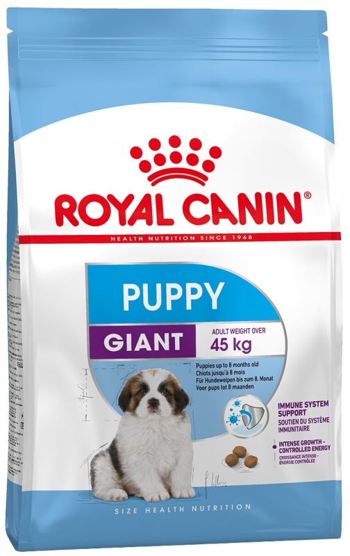 Royal Canin kuivtoit väga suurt tõugu koerte kutsikatele, kaal täiskasvanuna on üle 45 kg.