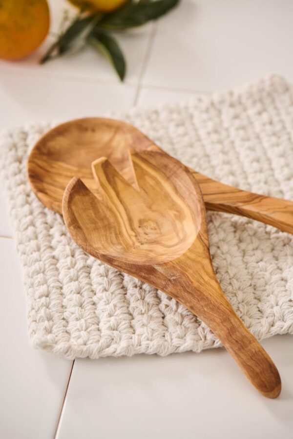 Oliivipuust salatilusikad, mis ühendavad praktilisuse ja kauni naturaalse ilme. Vastupidav materjal ja looduslik puidumuster teevad neist stiilse ja kasuliku abivahendi igas köögis.