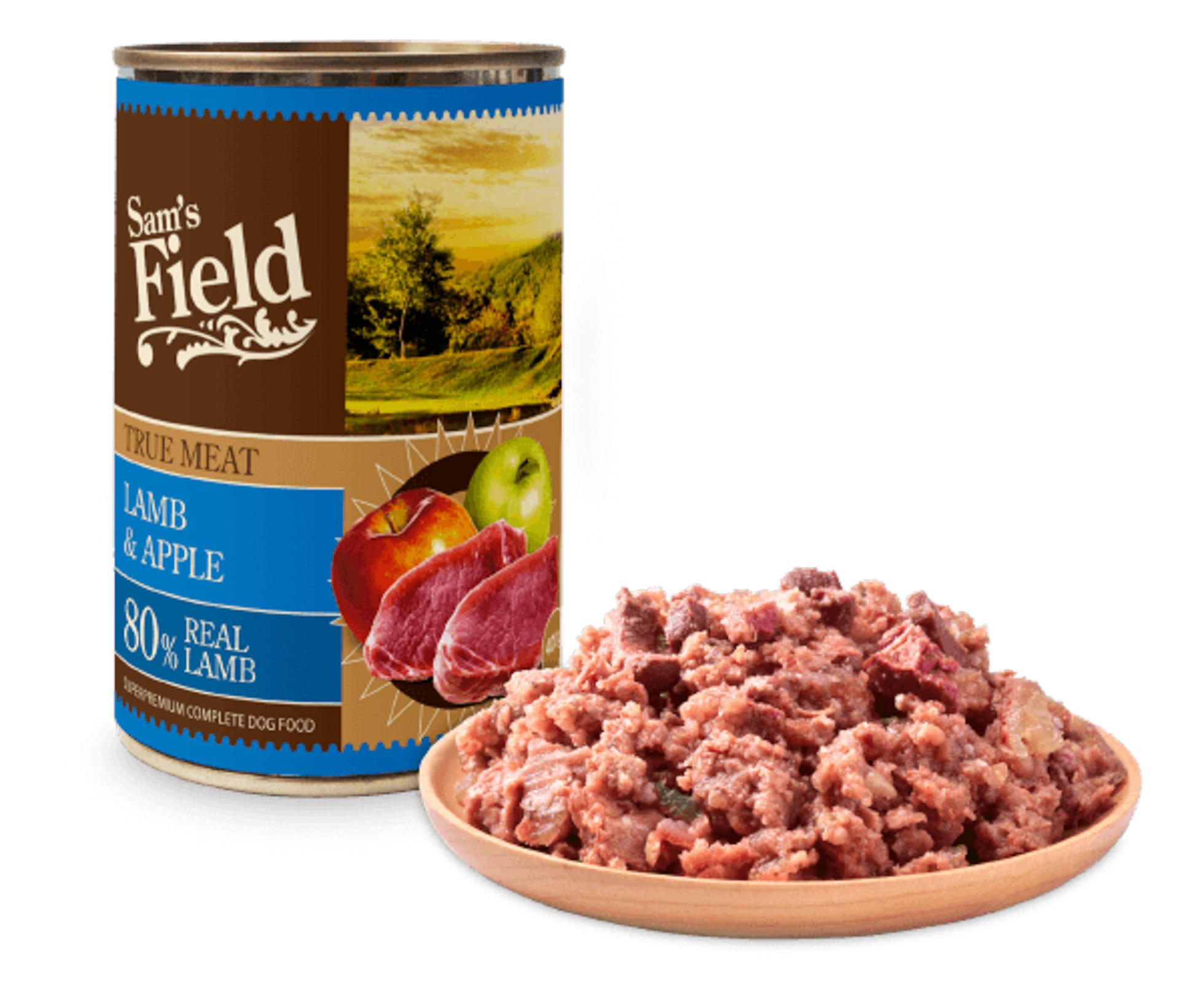 Täiendsööt koertele. Liha-ja lihasaadused(80% lammas),õun (10%), puljong (8,5%), mineraalid (1%), läheäli (0,5%).