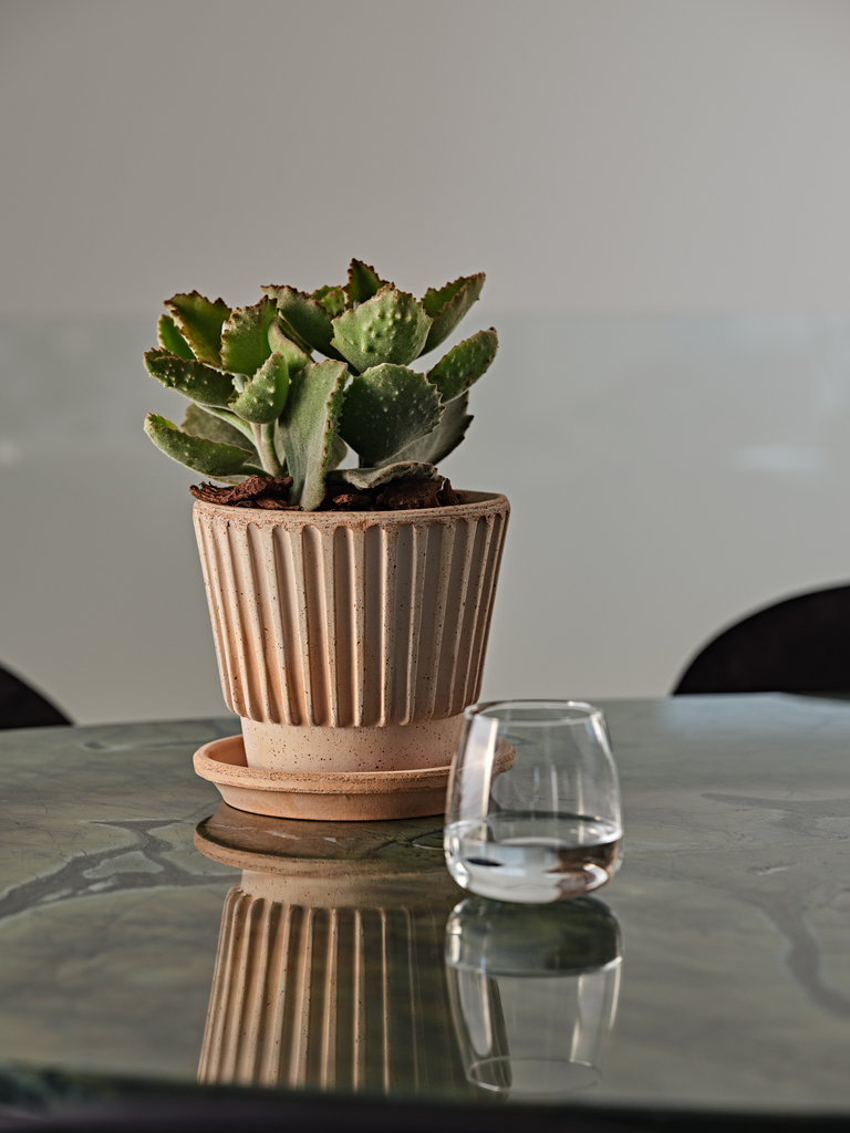 Käsitsi valmistatud Bronte savipott on tehtud Galestro terrakotasavist. Klassikalise kujuga potti täiendab reljeefne pind, mis annab sellele iseloomuliku välimuse. Materjal on hingav ja vastupidav ning sobib kasutamiseks nii toataimede kui ka õuetaimede puhul. Savile omane pinnastruktuur võib aja jooksul tekitada heledaid soolajälgi, mis annavad igale potile veidi erineva ilme.