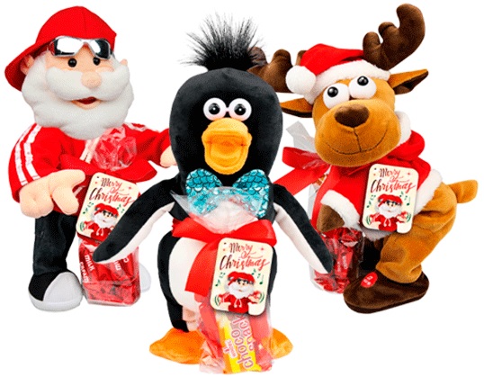 Gurmee ja kingiideed Tantsivad ja laulvad plüüsist jõulufiguurid kommikotiga 85g