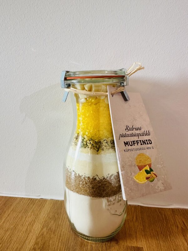 Valmistamine: Vali ülemise ja alumise kuumutuse funktsioon ning eelsoojenda ahi 180°C või konvektsioonahi 160°C. Vahusta või ja munad kausis mikseriga, lisa õli ja piim. Seejärel lisa klaaspurgi sisu ja sega 1 minut, alguses kõige madalamal kiirusel ja siis kõige kiiremal kiirusel. Jaga tainas võrdselt tassidesse või muffinivormidesse. Aseta küpsetusalus ahju ja küpseta ahju alumises osas umbes 15–20 minutit. Lase muffinitel jahtuda ja kaunista vastavalt soovile.