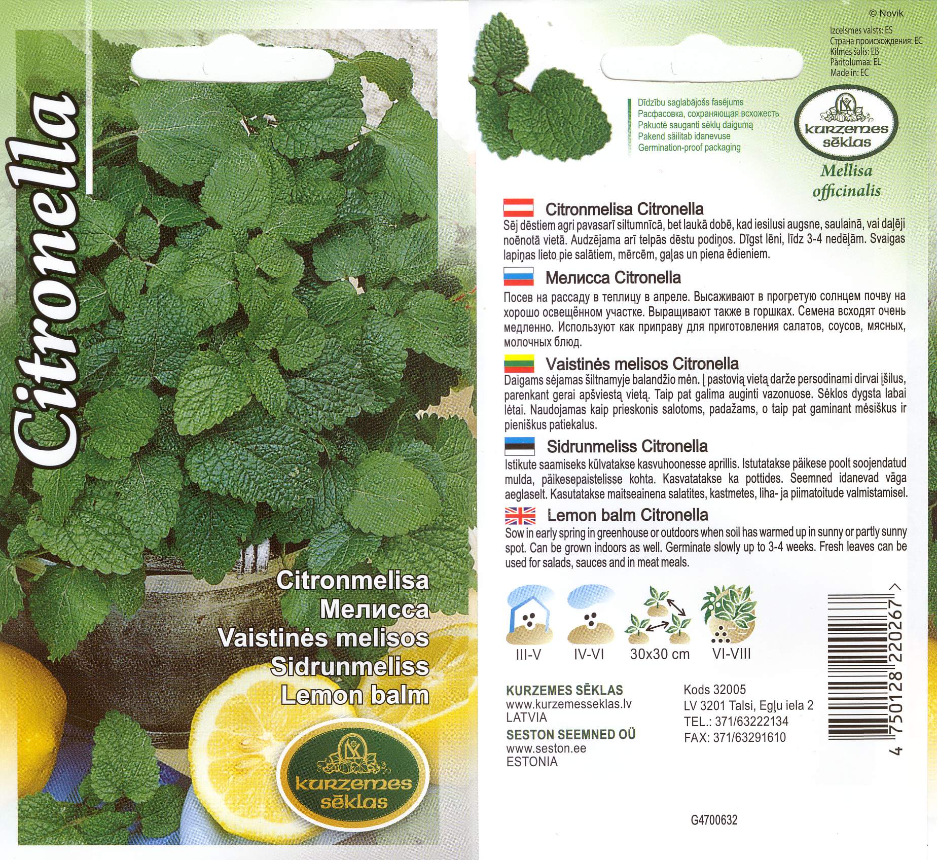 Melissa officinalis Tootja: Kurzemes seklas Tootekood: K063506