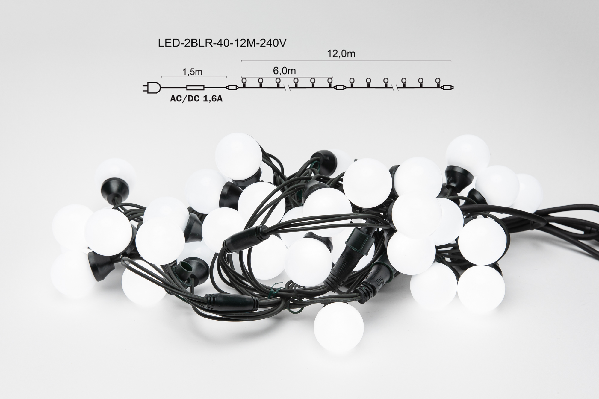 Külma valge valgusega LED-pallikujuline valguskett, mille 40 valgust 4 cm läbimõõduga kuplites loovad ereda ja selge valguse. Kett on 12 meetrit pikk ning sobib suurepäraselt puude, põõsaste ja hoonete piirjoonte kaunistamiseks. Tumeroheline kaabel sulandub hästi väliskeskkonda. Valguskette saab omavahel ühendada kuni 25 komplekti. Kettide ühendamiseks vajalik vahejuhe ei ole kaasas (müüakse eraldi). Lisakette tuleb soetada eraldi.
