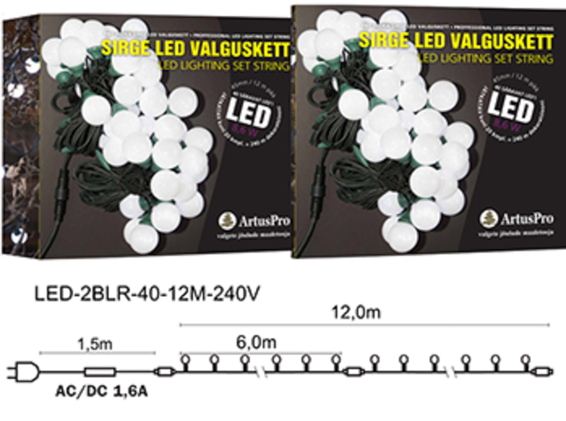Sooja valge valgusega LED-pallikett, mille igas 4 cm läbimõõduga pallis olev LED tekitab hubase ja pehme valguse. Kett on 12 meetrit pikk ja sobib ideaalselt puude, põõsaste ja hoonete piirjoonte kaunistamiseks. Tumeroheline kaabel sulandub loodusesse. Valguskette saab omavahel ühendada kuni 25 komplekti. Kettide ühendamiseks vajalik vahejuhe ei ole kaasas (müüakse eraldi). Lisakette tuleb soetada eraldi.