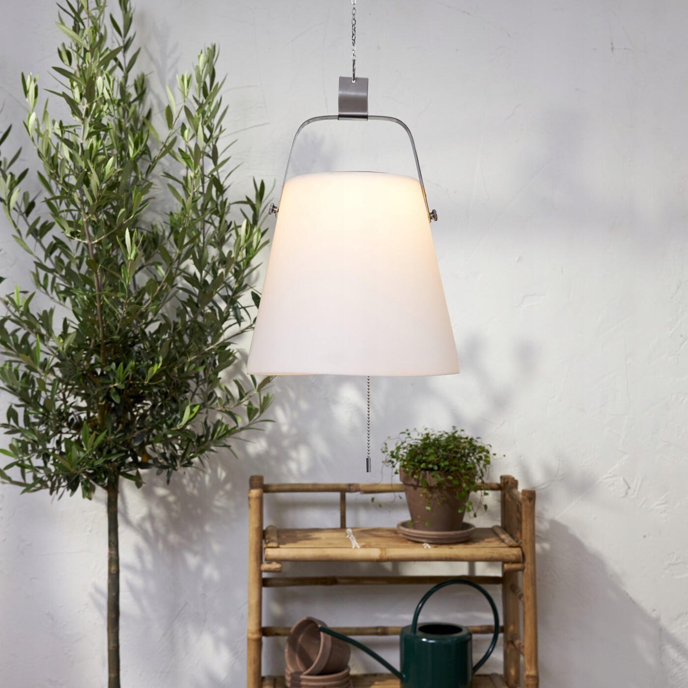 Solia on stiilne ja praktiline solarvalgusti, mis sobib suurepäraselt kasutamiseks aias, terrassil või rõdul. Vastupidav ABS-plastikust kuppel koos roostevabast terasest sanga ja 75 cm pikkuse riputusketiga võimaldab lambi hõlpsat paigaldamist näiteks pergola alla, oksale või rõdupiirdele.
