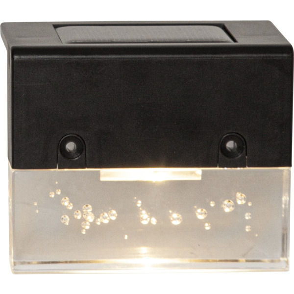 Bubbly Fence päikesepatareiga valgustid on praktiline ja dekoratiivne viis aia, terrassi või piirde valgustamiseks. Komplektis on neli väikest musta valgustit, mille mullimustriline akrüülios annab hämaruses kauni ja pehme sooja valge kuma. Valgustid on kergesti paigaldatavad näiteks aia külge või rõdupiirdele. Päevasel ajal laeb integreeritud aku end päikesevalguse abil, õhtul lülitub valgusti automaatselt sisse.