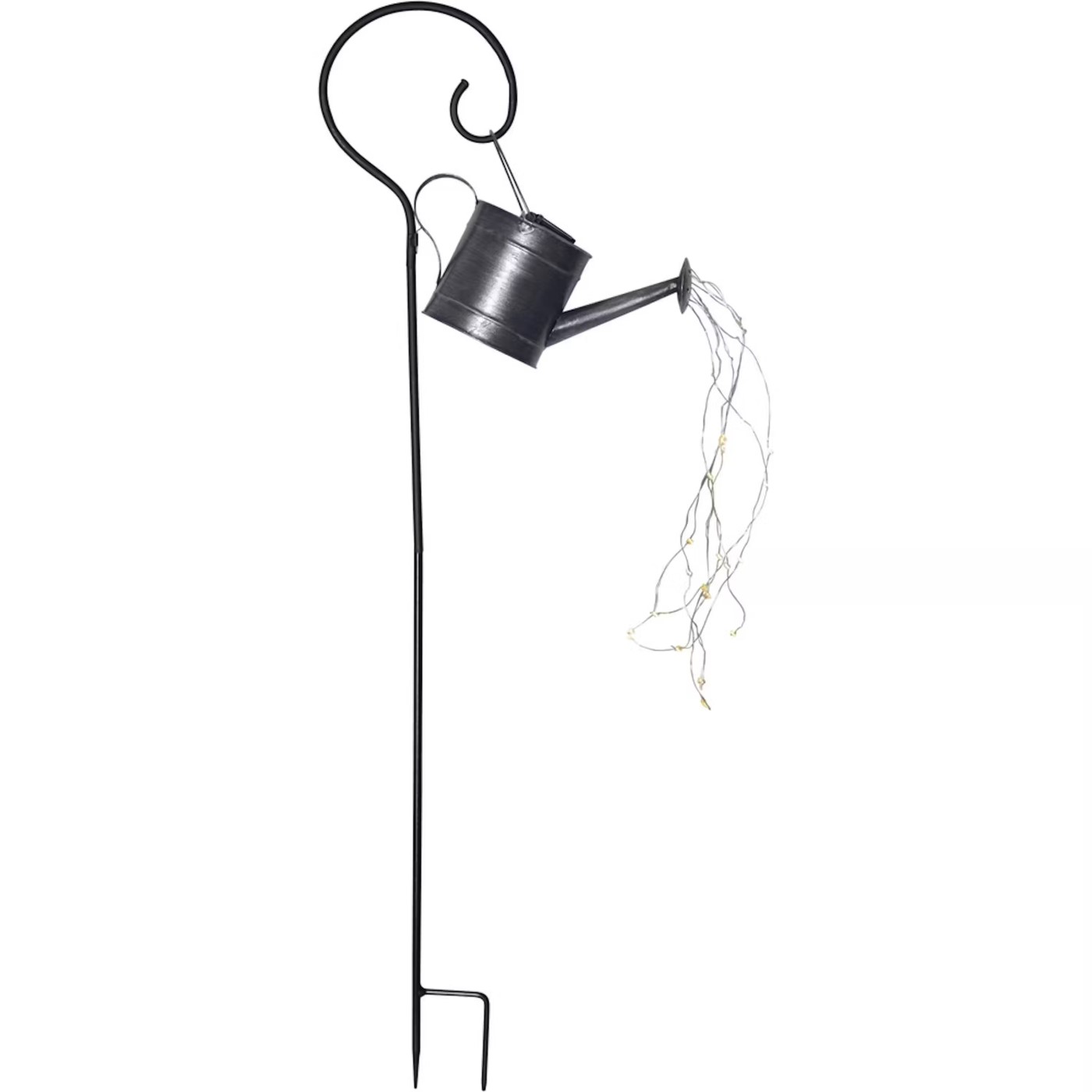 Metallist kastekannuga solarvalgusti, mis lisab aeda või terrassile nii stiili kui ka hubasust.  Kastekannu tila juurest langevad hõbedased valgusniidid meenutavad õrnalt langevaid veetilku, mida valgustavad 28 sooja valget LED-i, luues muinasjutulise valgusefekti. Dekoratsioon sobib ideaalselt aeda, terrassile või rõdule ning aitab luua ainulaadse ja kutsuva õhustiku. Tugev metallkorpus tagab vastupidavuse ja ilmastikukindluse, samas kui kaasasolev metallist jalg võimaldab lihtsat ja stabiilset paigaldust maapinda või lillepotti.