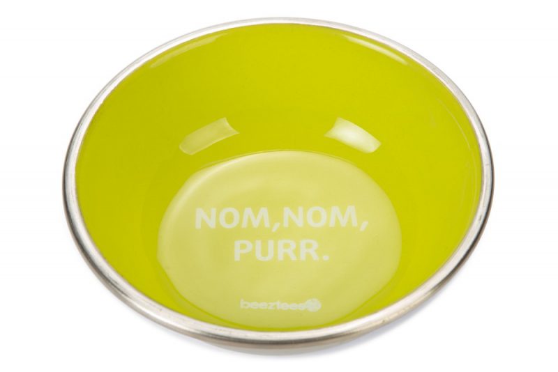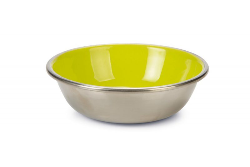 Roostevabast terasest toidu-, joogikauss on erksavärvilise ning kausi põhjas on tsitaat. Kausi mõõdud: d13x h4cm