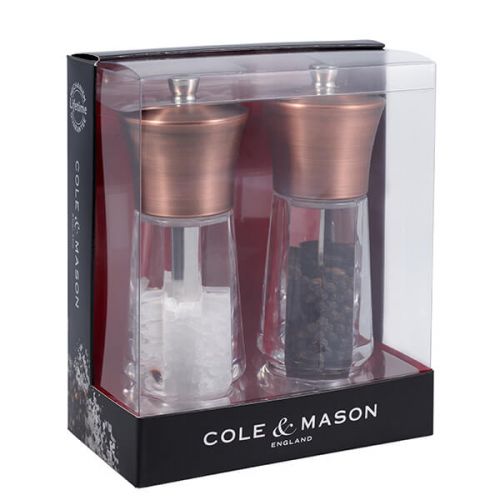 Stiilne 2 vürtsiveski komplekt firmalt Cole & Mason. Veskitel on mitu jahvatusastet. Valmistatud messingi välimusega kvaliteetsest roostevabast terasest. Puhastamise hõlbustamiseks pühkige niiske lapiga.