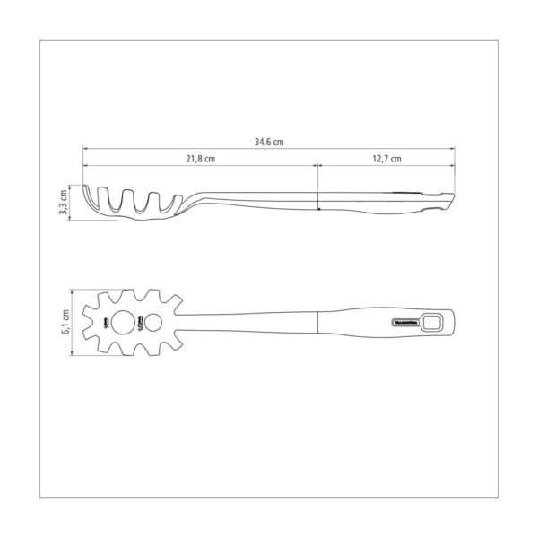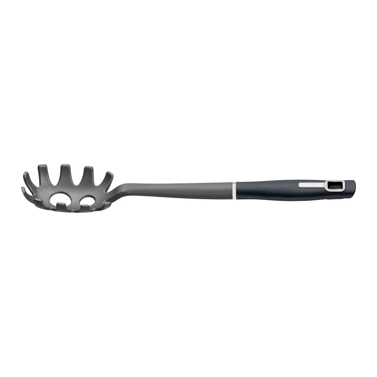 Silikoonist spagetilusikas, mis talub kuni 180°C temperatuuri. Auguga polüpropüleenist käepide, mis võimaldab seda oma kööki riputada. Ideaalne vahend kasutamiseks mittenakkuva ja keraamilise kattega pannidel. Nõudepesumasinas pestav.