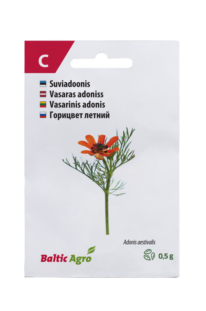 Suviadoonis on elegantne üheaastane suvelill, mille punased õied musta südamikuga mõjuvad peenras eriti pilkupüüdvalt. Sobib hästi ka lillepottidesse ning on kena valik ka lõikelilleks, kasvades umbes 40 cm kõrguseks. Seemned külva aprillis külvikasti või mais otse peenrasse ning istuta ette kasvatatud taimed õue pärast öökülmaohu möödumist. Tootepilt on illustratiivne.