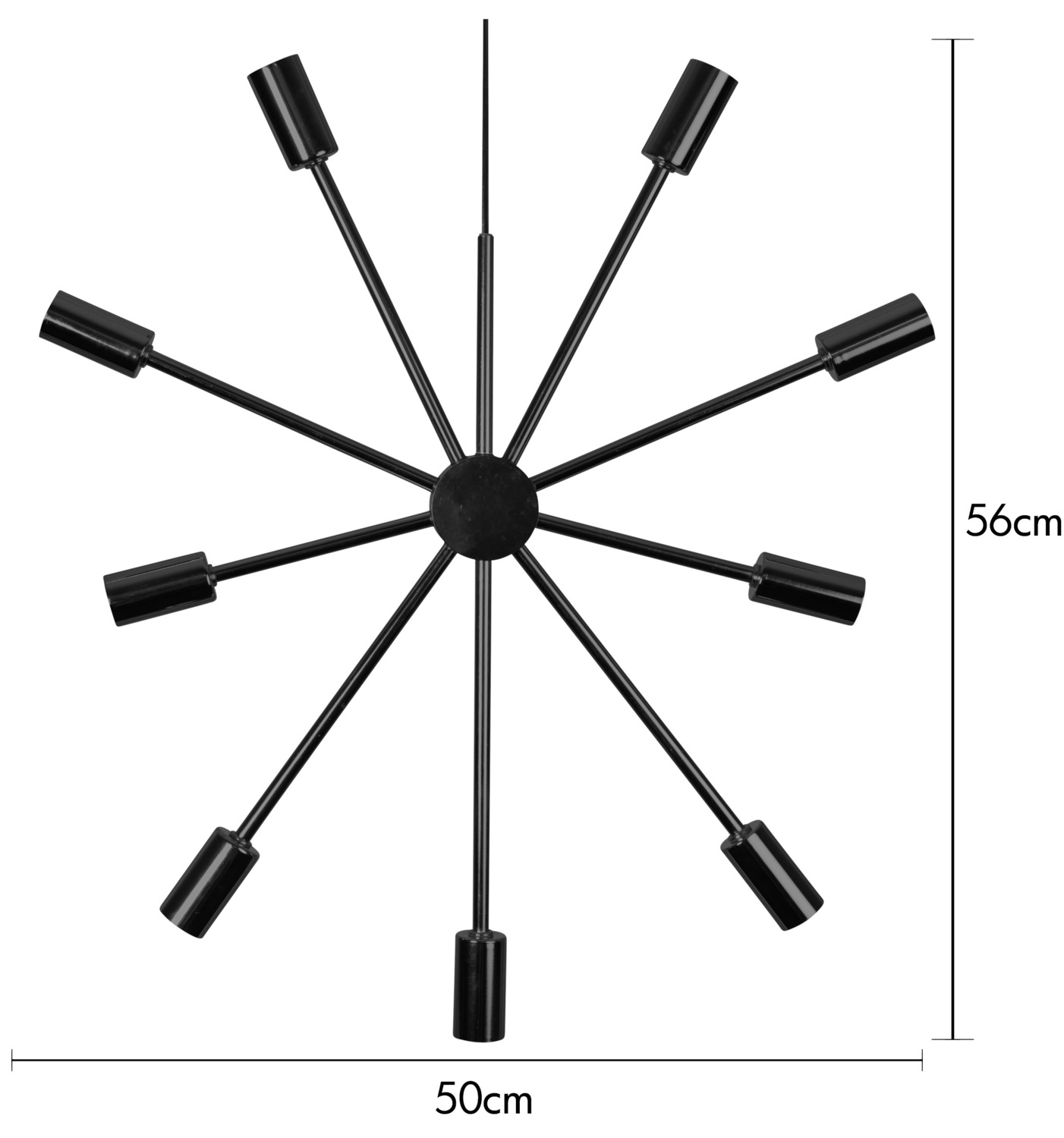 Valgustil on üheksa E14 sokliga valgusallika pesa, mis võimaldavad luua soojalt kumava valguse. 350 cm pikkune must toitekaabel võimaldab mugavat riputamist ka kõrgete lagede korral. Juhtmel asuv lüliti muudab kasutamise lihtsaks.