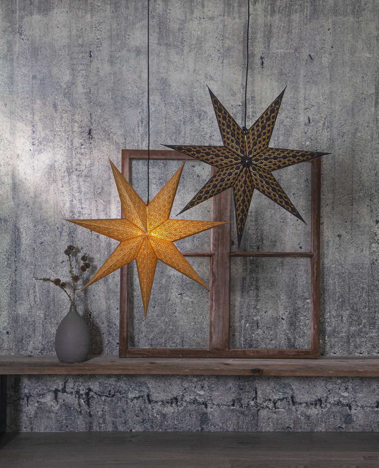 Tähte saab kasutada nii valgustusega kui ilma – valgusallika lisamine toob kaunilt esile kuldse mustri ja loob hubase valgusmängu, kuid see mõjub pilkupüüdvalt ka valgustuseta. Sobib ideaalselt akna ette või seinale riputamiseks, et lisada ruumi eksklusiivset jõuluhõngu.