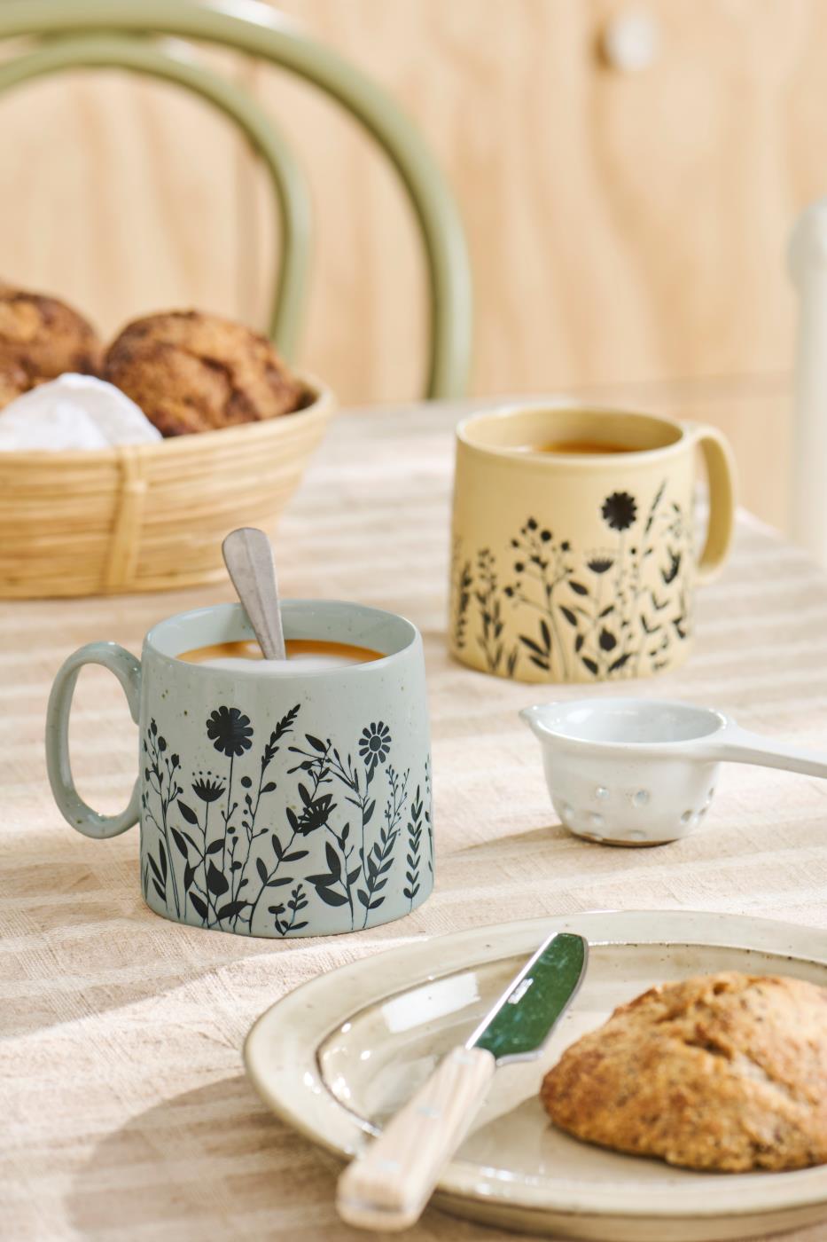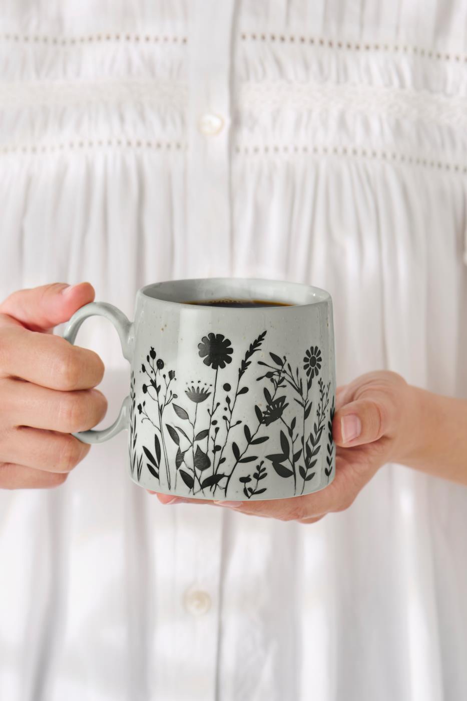 Lillemustriga sinine 300 ml kivikeraamiline tass on elegantne valik kuumade jookide nautimiseks, pakkudes silmapaistvat kontrasti tuhmsinise pinna ja mustade lillesiluettide vahel. Tassi pehme kuju ja tugev sang muudavad selle igapäevaseks lemmikuks nii hommikukohvi kui ka õhtuse tee serveerimisel. Kivikeraamikast valmistatud nõu on toiduga kokkupuuteks ohutu ning seda on tänu nõudepesumasina kindlusele lihtne hooldada.
