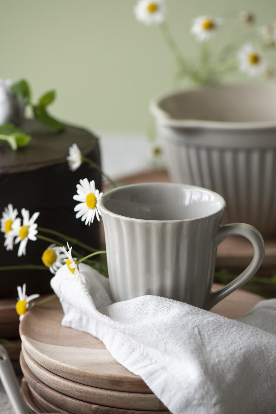 Kivikeraamikast tass soontega Mynte Latte 240 ml ühendab lihtsa vormi ja reljeefse pinnaviimistluse. Sooneline struktuur lisab visuaalset ilmet ning muudab nõu käes hoidmise mugavaks. 240 ml maht sobib hästi kohvi, tee või muude jookide serveerimiseks. Tass on toiduga kokkupuuteks sobiv ning kasutatav ahjus, mikrolaineahjus ja sügavkülmas. Samuti võib seda pesta nõudepesumasinas. Latte toon haakub hõlpsalt teiste sama sarja toodetega.