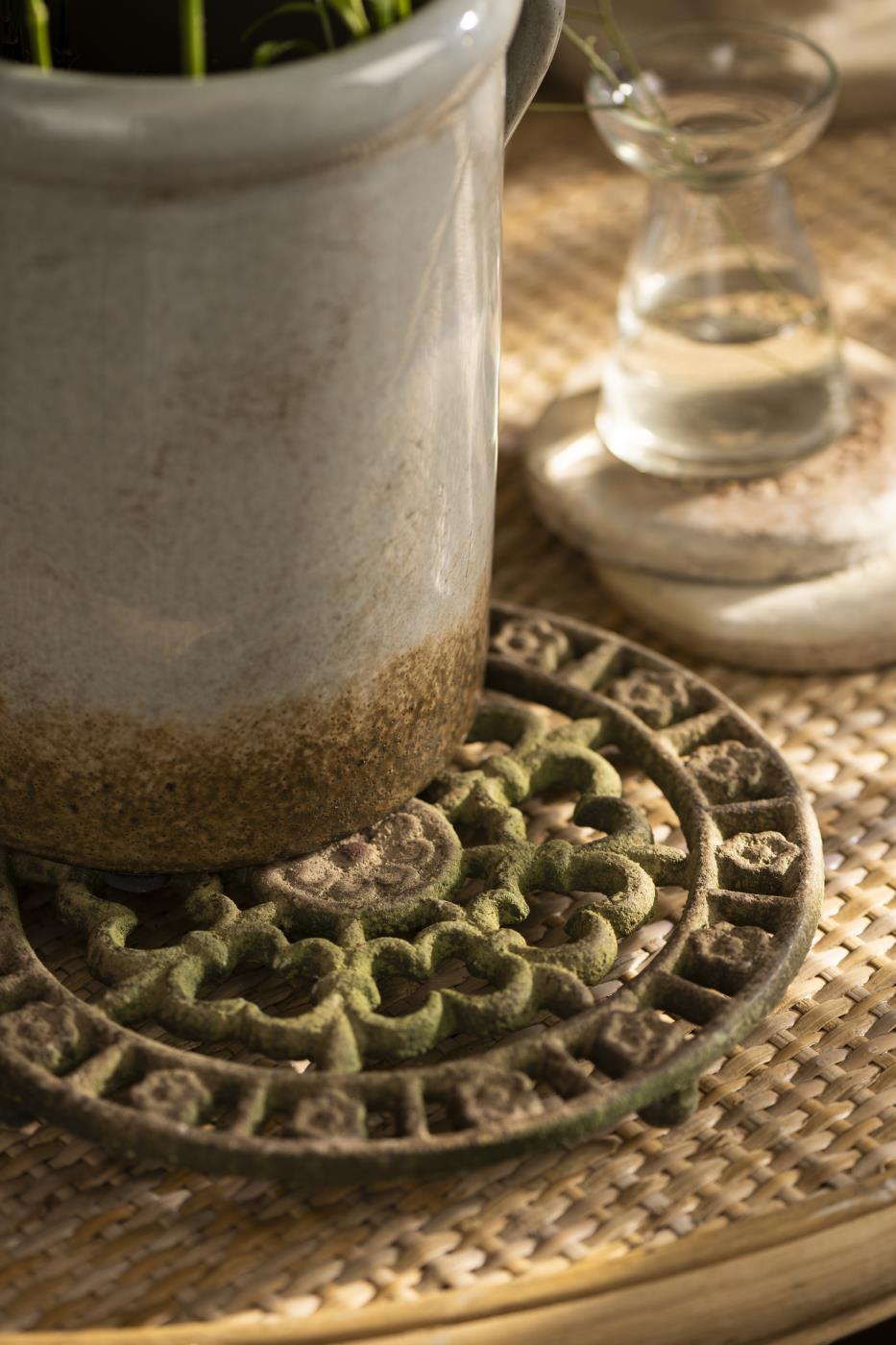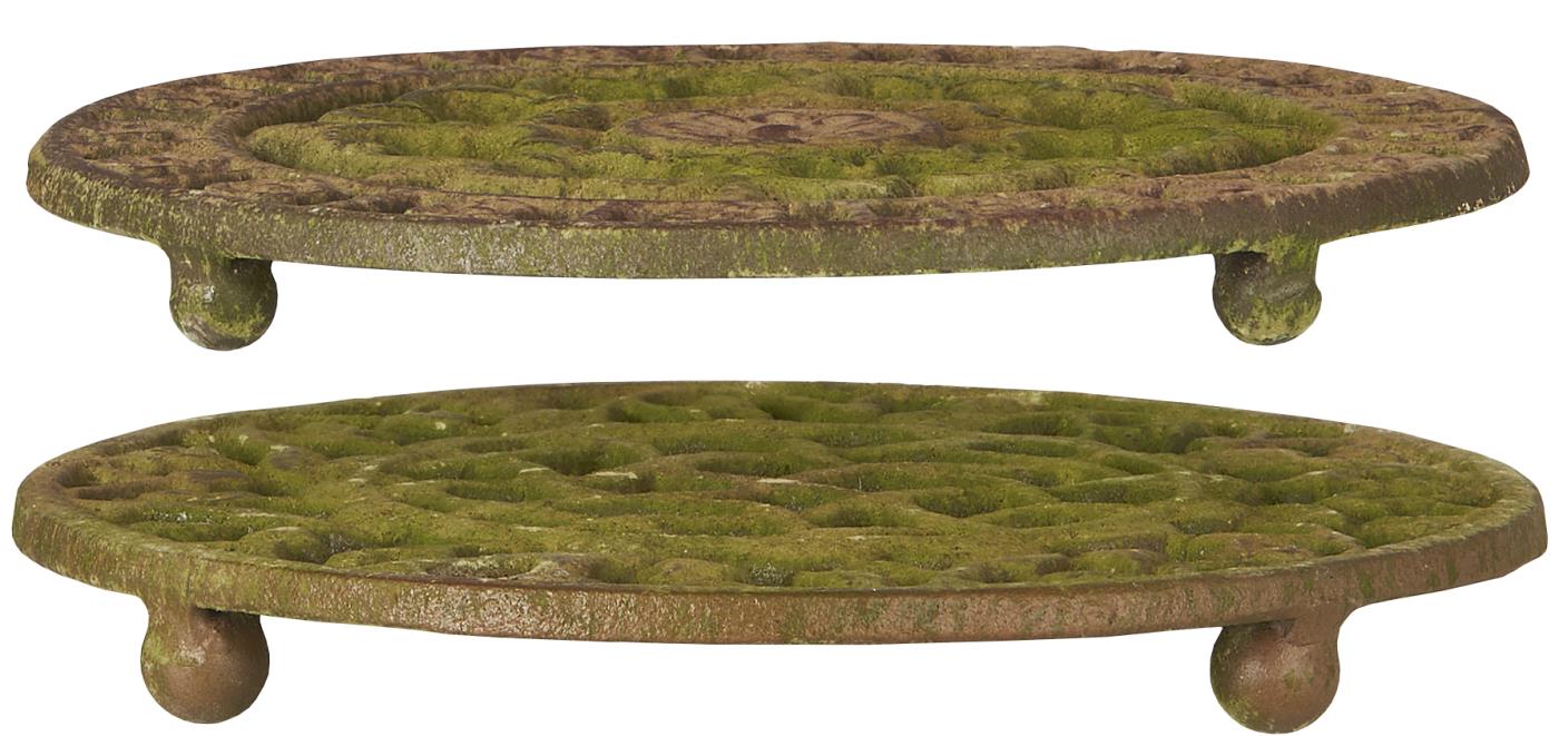 Rauast valmistatud alust kaunistavad filigraansed mustrid ja samblaroheline viimistlus.