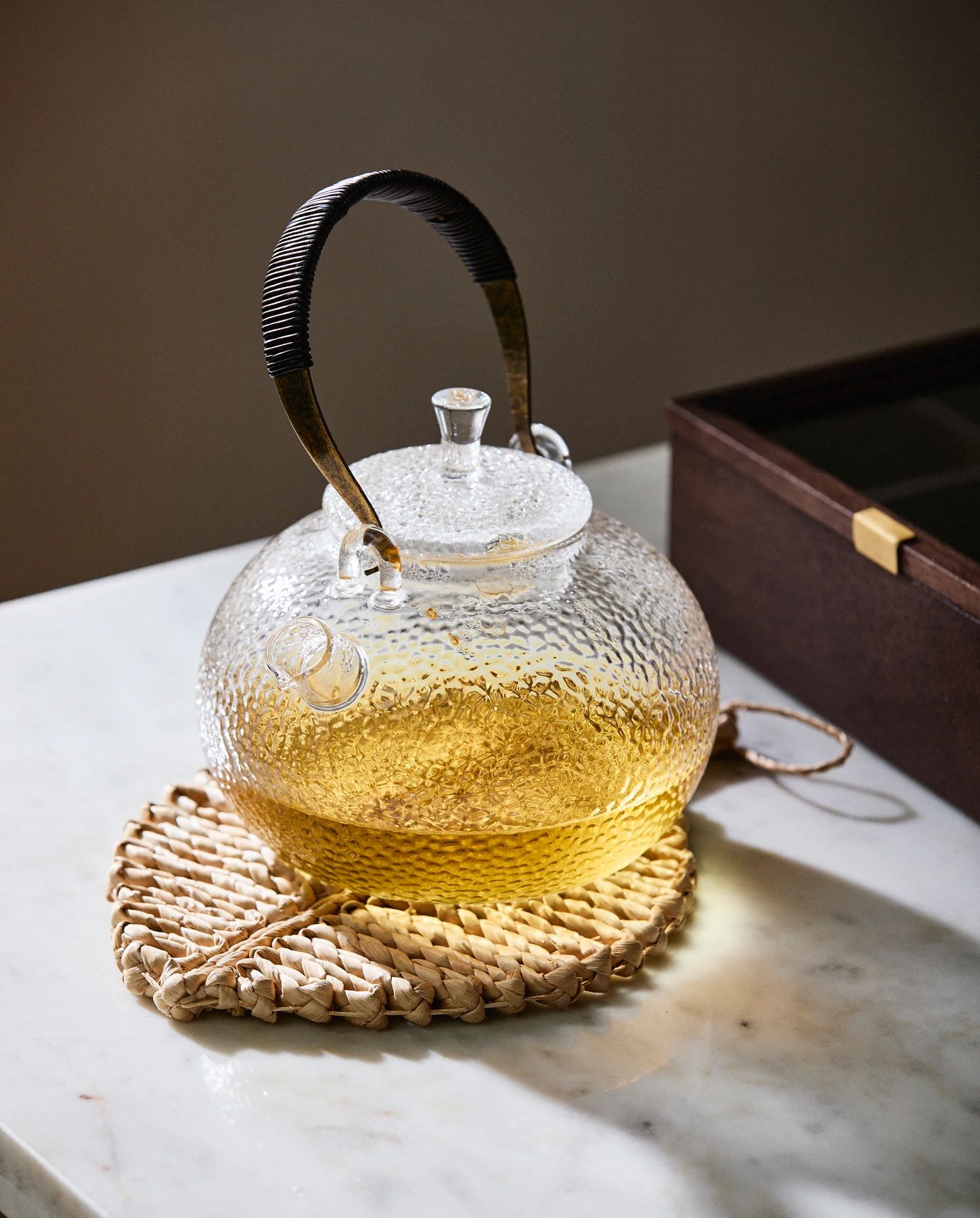 Klaasist teekannul Pepper on kaunis struktuurne klaaspind. Kannul on naturaalsete nööridega kaetud sang, mis lisab looduslähedast ja hubast ilmet. Kann sobib suurepäraselt nii serveerimiseks kui ka dekoratiivseks sisustuselemendiks – täida see näiteks jookide, lillede või hooajaliste kaunistustega.