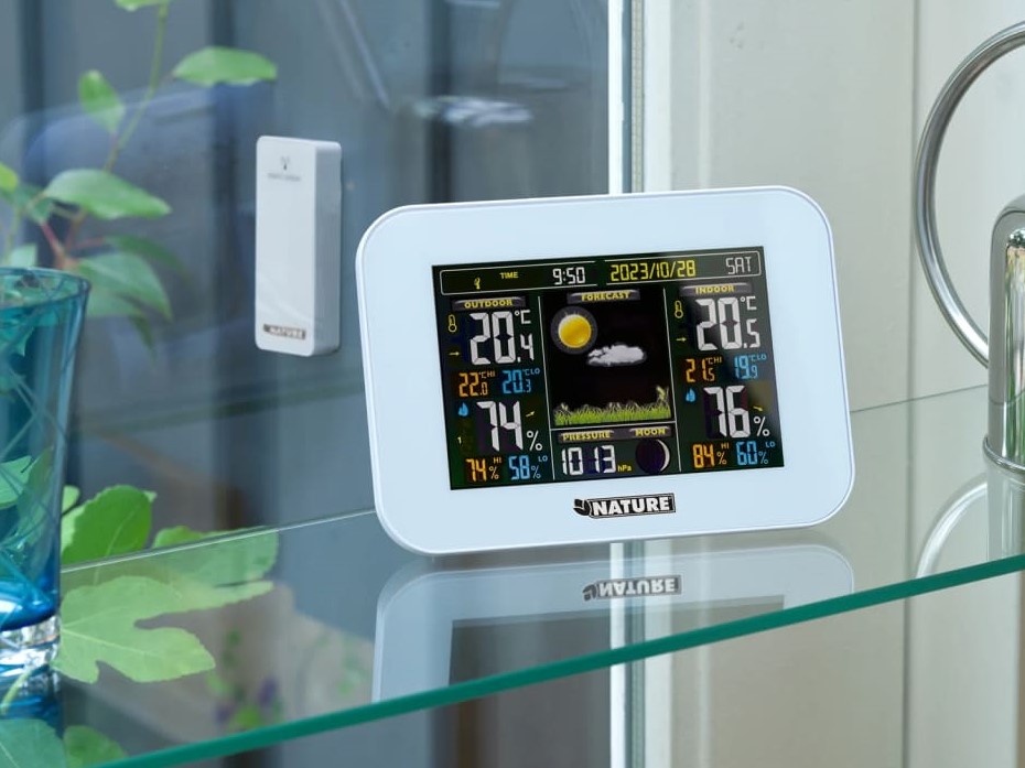 Natura digitaalne termomeeter on mitmefunktsiooniline seade, mis aitab jälgida sise- ja välistemperatuuri, õhuniiskust ning baromeetrilist rõhku. Lisaks prognoosib see ilma kuue erineva ikooni abil (päikesepaisteline, osaliselt pilvine, pilvine, vihm, äike, lumi) ning kuvab kuupäeva ja kellaaja. Seade toimib ka kalendrina ja on varustatud äratusfunktsiooniga, muutes selle praktiliseks abiliseks igapäevaelus.