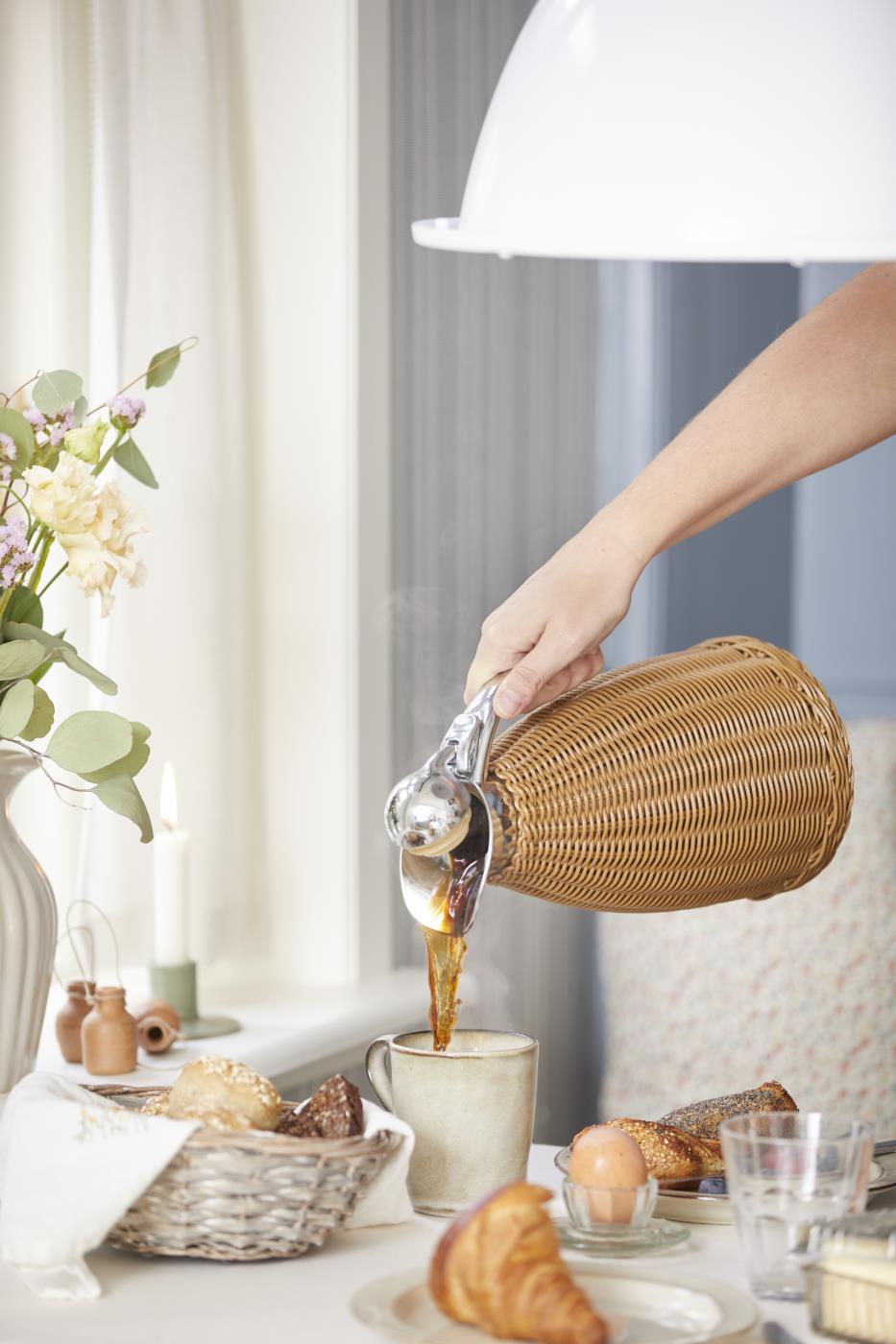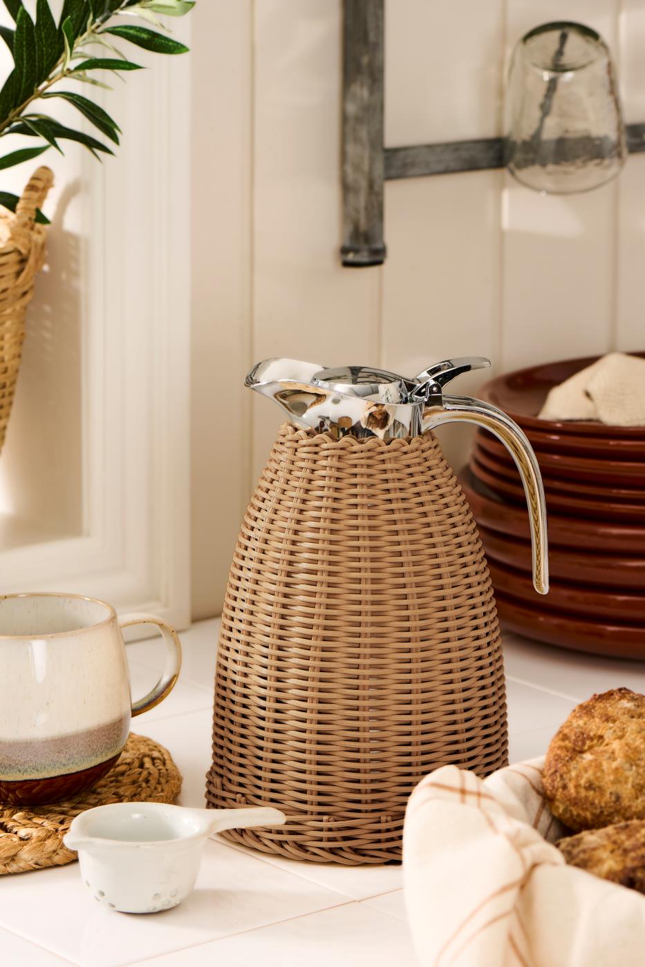 Elegantne punutisega termos mahutab 1,5 liitrit ja lisab igale lauale soojust ja isikupära. Naturaalse välimusega rattanpunutis ümbritseb vastupidavast materjalist sisemust, mis hoiab joogi kaua soovitud temperatuuril. Ideaalne hommikukohviks, piknikule või külaliste võõrustamiseks.