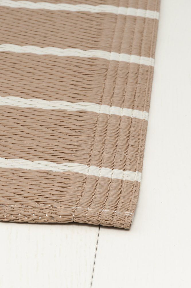 Beeži ja valge triibuline Tilly vaip lisab ruumile värskust ja praktilisust. Kerge ja vastupidav plastvaip sobib kasutamiseks nii siseruumides kui ka õues – näiteks köögis, esikus, terrassil või suvekodus.