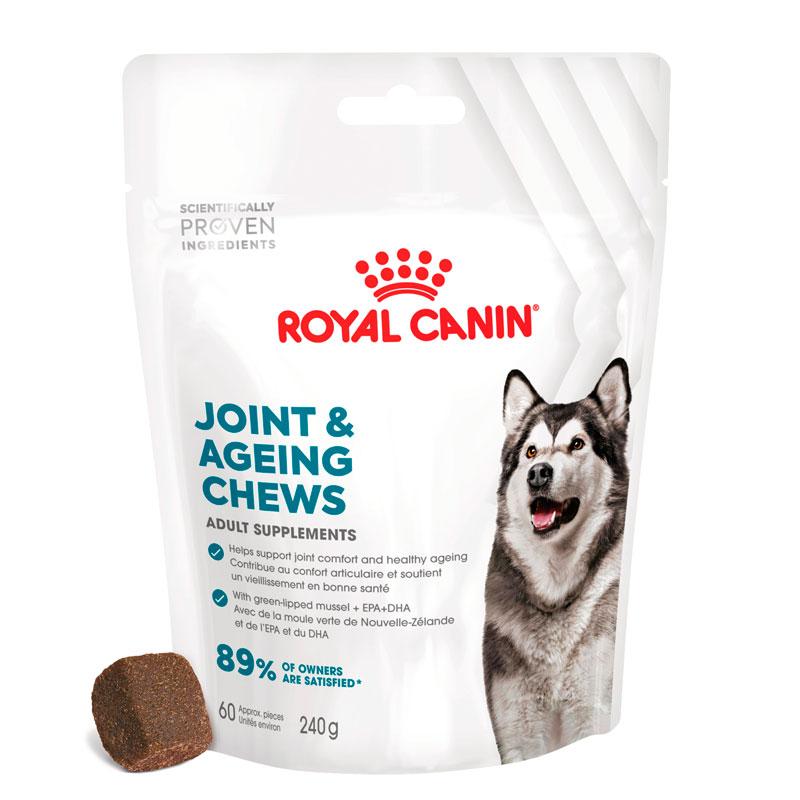Royal Canin “liigesed ja vananemine” toidulisand koerale. Täiskasvanud koertele mõeldud toidulisand on loodud veterinaararstide teadmiste põhjal ning hoolikalt testitud, et vastata koerte vajadustele ja eelistustele. Toidulisandi koostis tugineb teaduspõhistele uuringutele ning üle 50-aastasele kogemusele koerte toitumise valdkonnas.