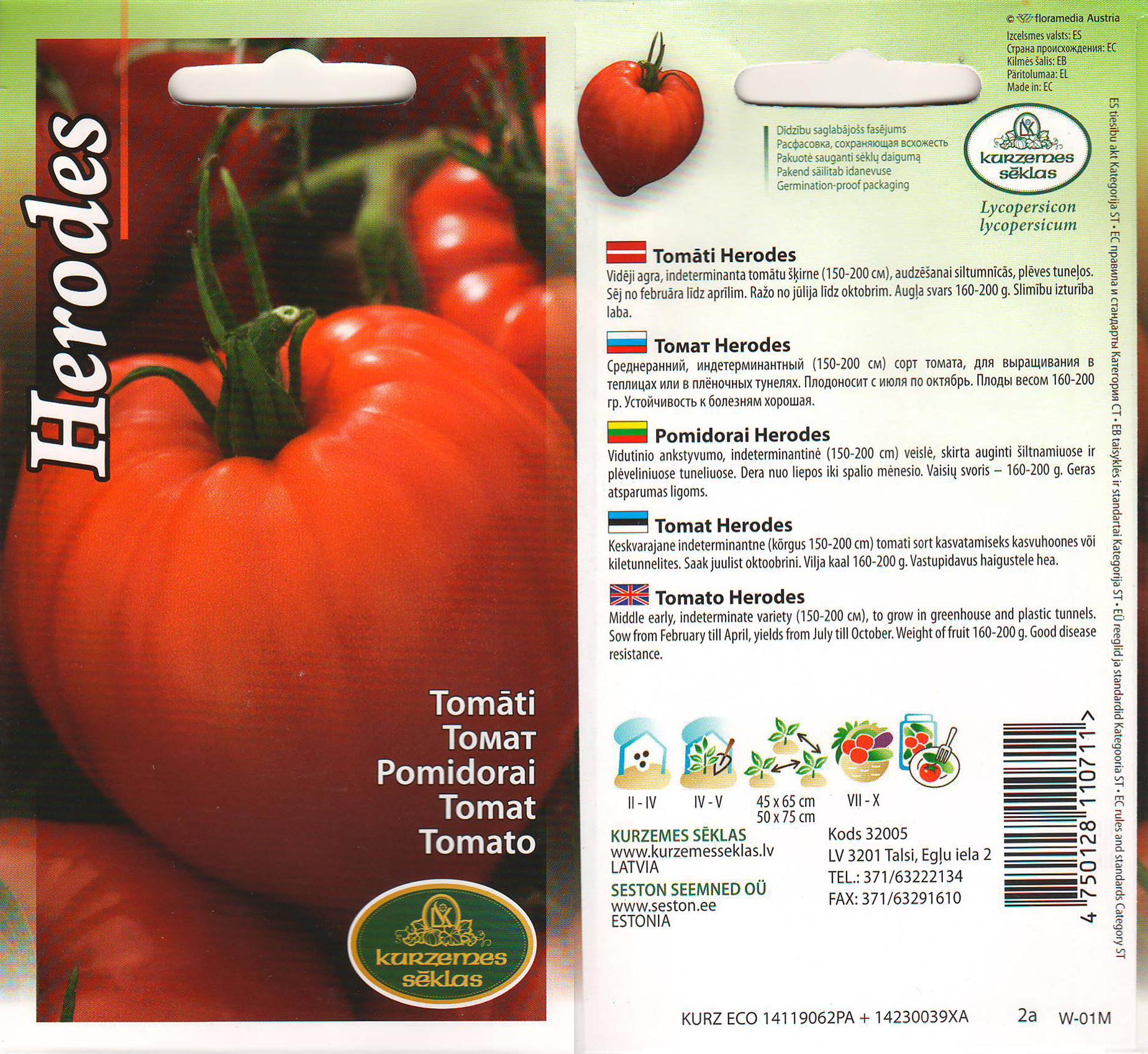 Lycopersicon esculentum Tootja: Kurzemes seklas Tootekood: K063398
