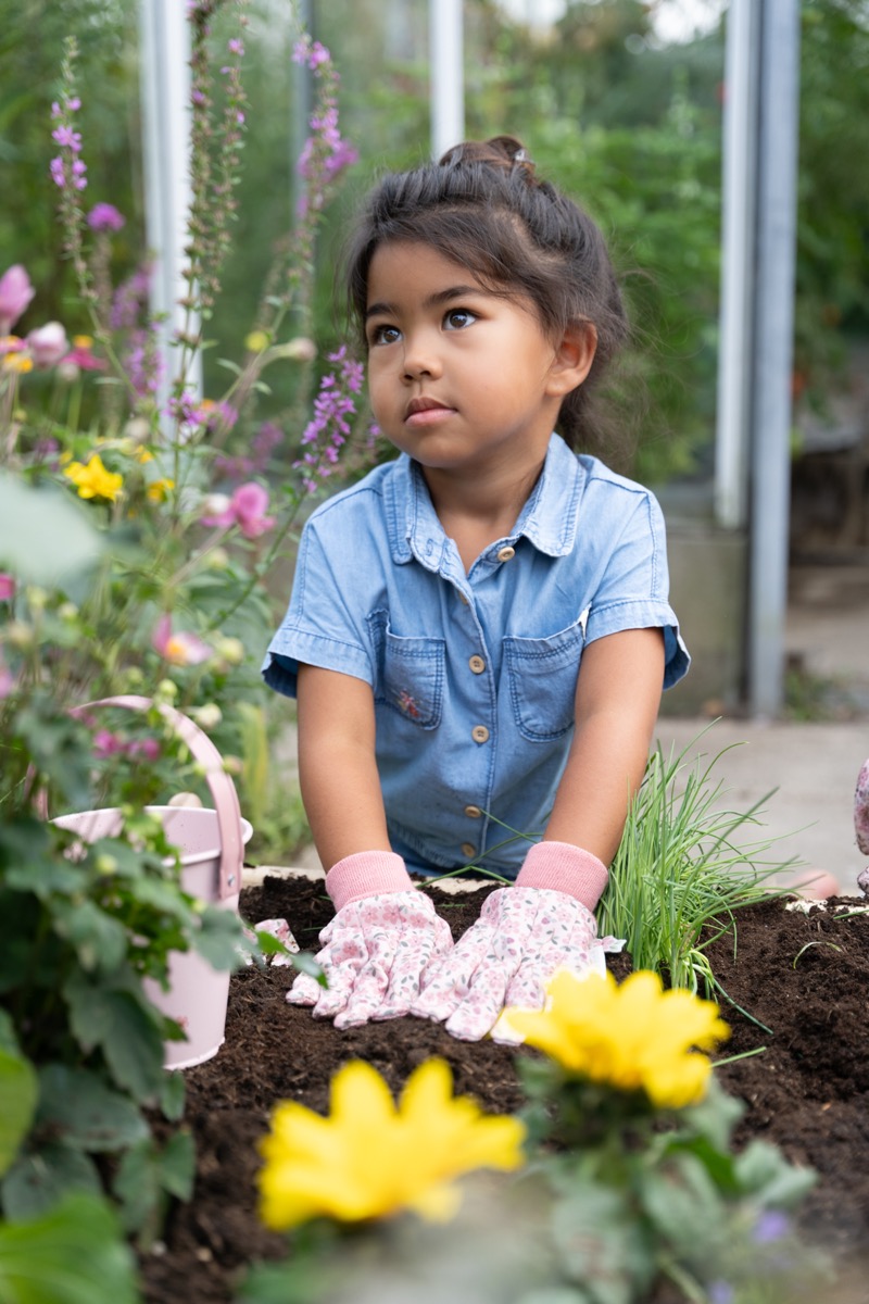 Fairy Garden töökindad väikestele aednikele. Rõõmsameelse lillemustriga disain lisab aiatöödele mängulist stiili ja muudab väljas tegutsemise veelgi lõbusamaks.