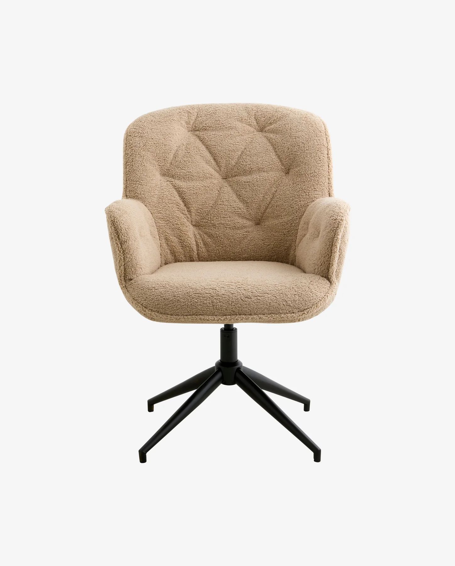 Kontoritool Lea on kaetud bouclé kangaga ning tool toetub stiilsele mustast metallist alusele. Mugav tool ühendab elegantse disaini, praktilisuse ja istumismugavuse, pakkudes suurepärast toetust pikemaks tööajaks. Tooli iste pöörleb 360 kraadi, võimaldades paindlikku liikumist.