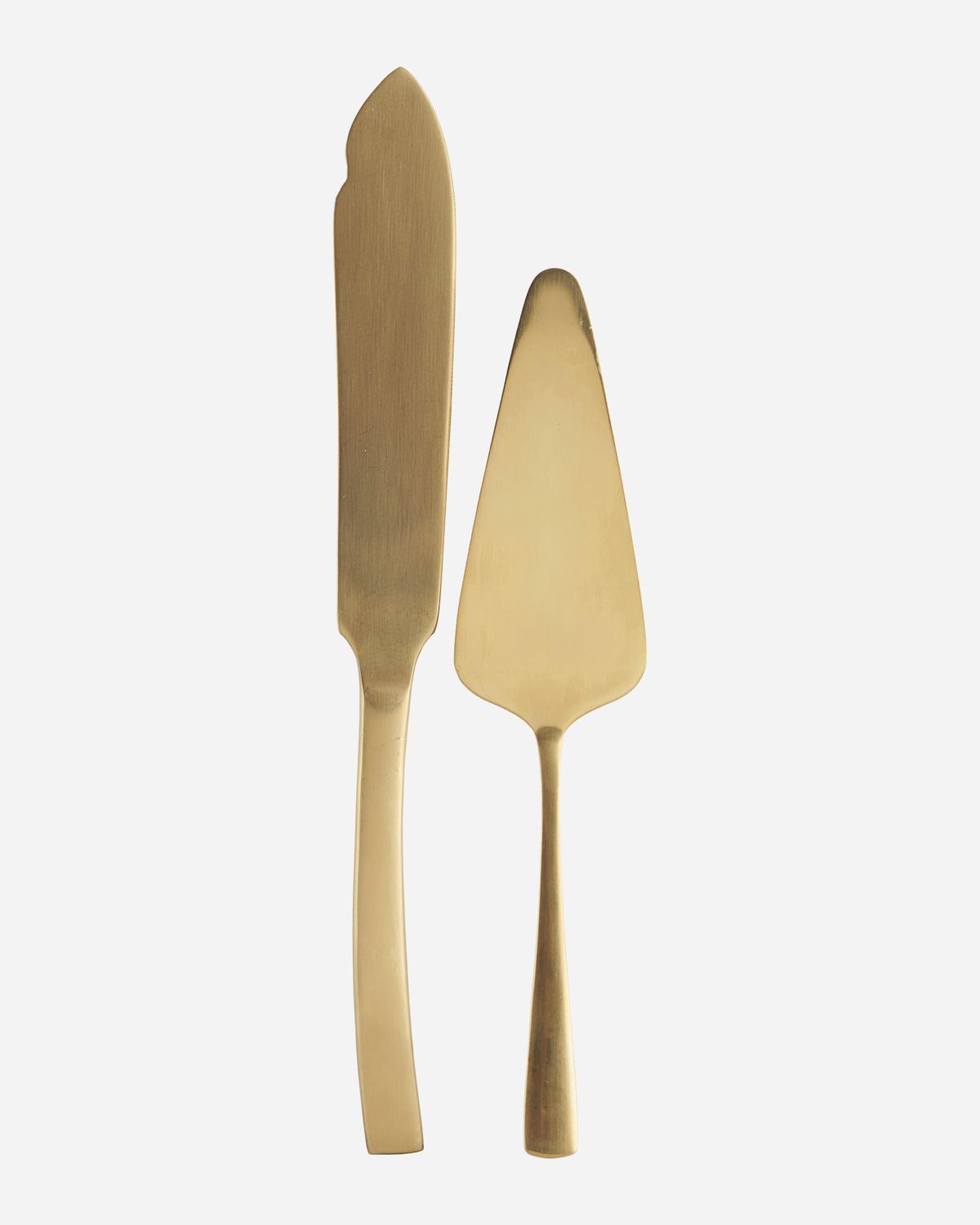 House Doctori elegantse kuldse viimistlusega komplekt, mis koosneb noast ja tordilabidast.