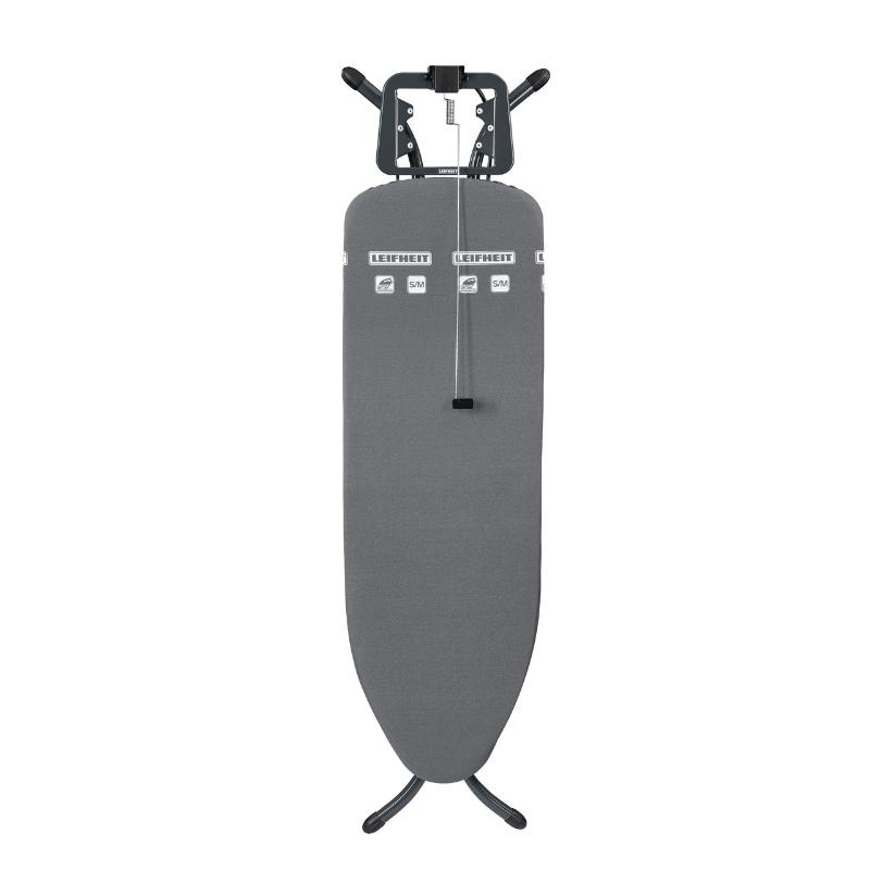 Leifheit Air Board M Black + triikimislaud ühendab stiilse musta disaini ja tehnoloogilise mugavuse, muutes triikimise lihtsaks ja seljasõbralikuks. Väga kerge triikipinna ja Thermo Reflect kihi abil, mis peegeldab auru ja kuumust, saavutad efektiivse kahepoolse triikimistulemuse. Laua kõrgust saab reguleerida 78 kuni 98 cm, pakkudes optimaalset töökõrgust. Ergonoomiline disain ja kaasaegsed funktsioonid muudavad kasutamise nauditavaks ja mugavaks.