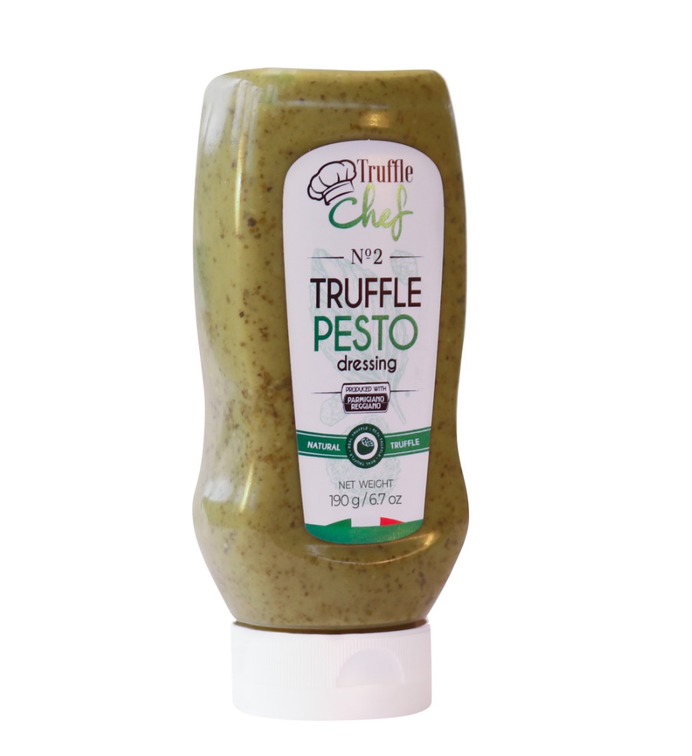 Koostis: trühvlimahl (vesi, Tuber aestivum Vittad.), päevalilleõli, aedšampinjon (Agaricus bisporus), basiilik 8%, Parmigiano Reggiano PDO (PIIM, sool, laap) 5%, ekstra neitsioliiviõli, modifitseeritud tärklis, tükeldatud suvine trühvel (Tuber aestivum Vittad.-päritolupiirkond EU) 3%, naturaalsed lõhna-ja maitseained, INDIA PÄHKLID, 2%), VADAKUVALK, emulgaator: päevalilleõli letsitiin, sool, suhkur, lõhnaained. Allergeenid: piim, pähklid.
