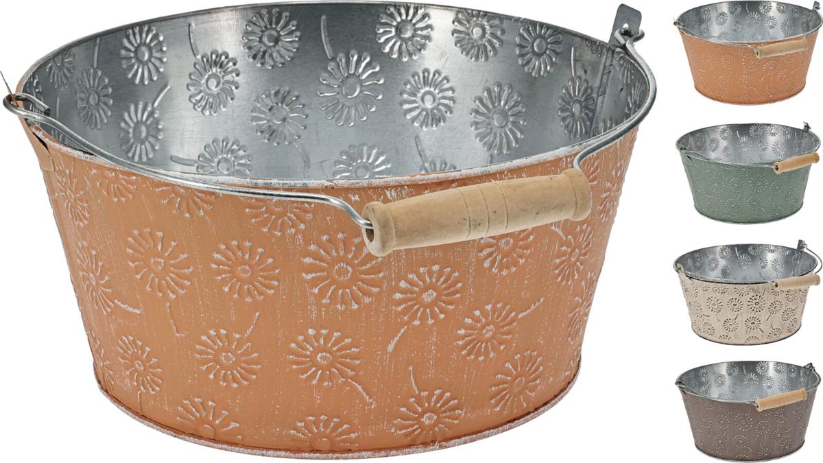 Dekoratiivne lillemustriline tsinkpott toob igasse keskkonda nostalgilise ja maalähedase hõngu. Poti praktiline sang puidust käepidemega muudab selle lihtsasti teisaldatavaks ning samas loob kaunist visuaalset aktsenti. Reljeefne mustripind ja kulutatud viimistlus lisavad vanaaegse ilme.