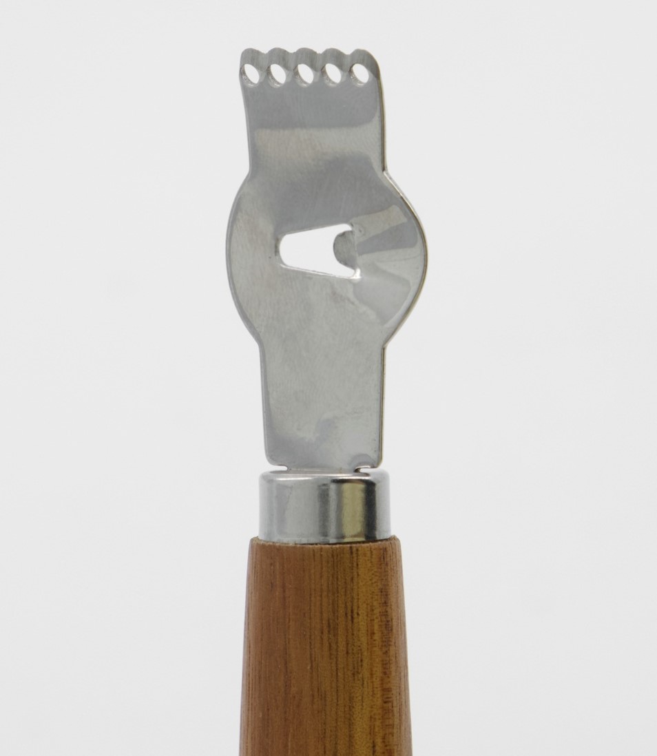 Nicolas Vahé tsitruseriiv on kompaktne ja tõhus köögivahend, mis sobib suurepäraselt sidruni, laimi või apelsinikoore peeneks riivimiseks. Roostevabast terasest tera tagab täpse tulemuse, samas kui naturaalsest akaatsiapuust käepide istub mugavalt kätte ja lisab riivimisele visuaalselt meeldiva aktsendi.