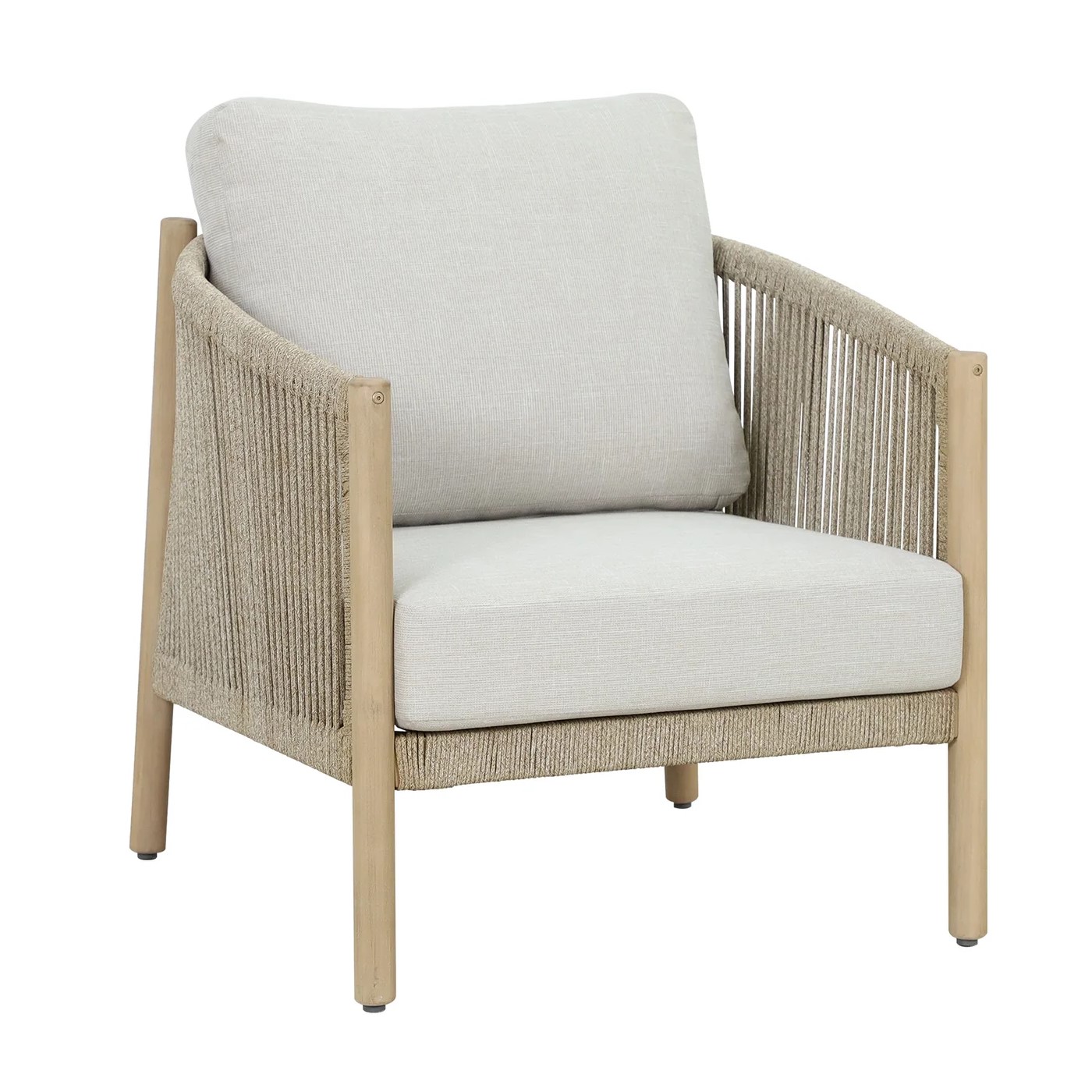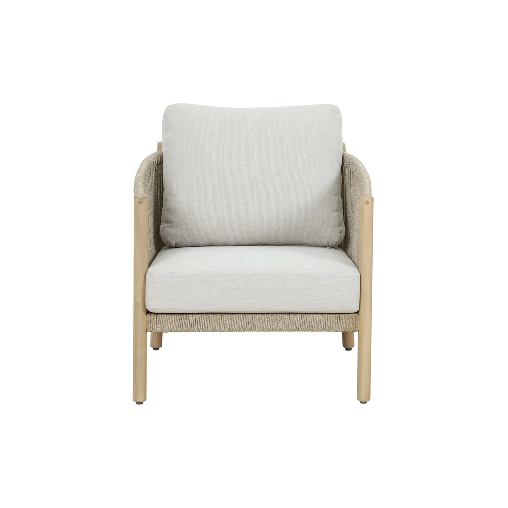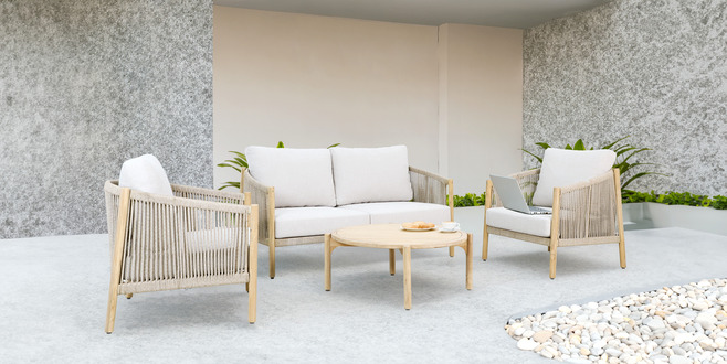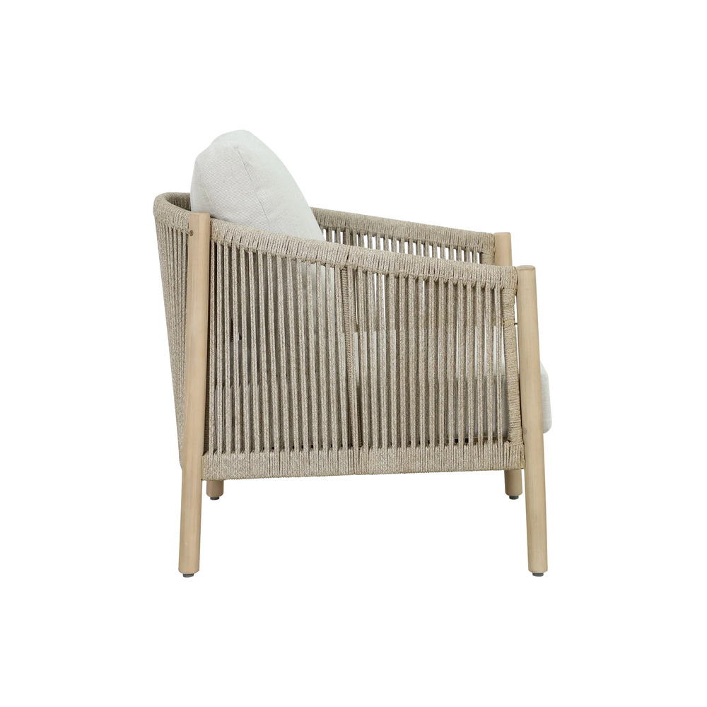 Käetugede ja seljatoe viimistlus on efektse käsitsi põimitud köiega, mis lisab toolile kerget ja õhulist ilmet ning tagab suurepärase toetuse. Pehmed, kvaliteetse Olefin-kangaga kaetud istme- ja seljapadjad loovad luksusliku ja mugava istumiskogemuse.