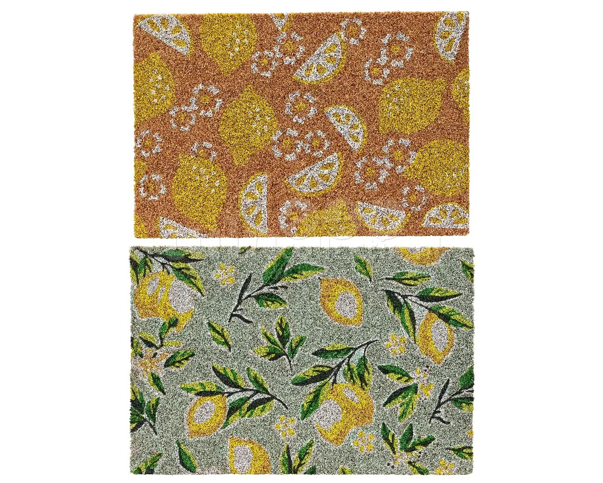 Sidrunimustriga kookoskiust uksematt lisab sissepääsule rõõmsa ja suvise ilme. Sobib siseruumides kasutamiseks.