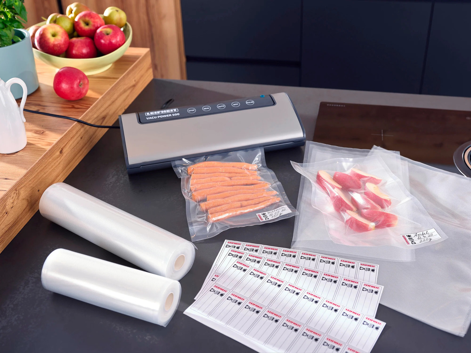 Leifheiti vaakumkotid 20 × 30 cm on ideaalne lahendus toidu säilitamiseks strateegiliselt ja tõhusalt. Need täiesti õhukindlad ja vedelikupidavad kotid pikendavad toidu värskust säilitades maitset ja toiteväärtust. Kombineerituna Leifheiti vaakumpakendajaga võib säilitusaega pikendada kuni viiekordseks ilma säilitusaineteta.