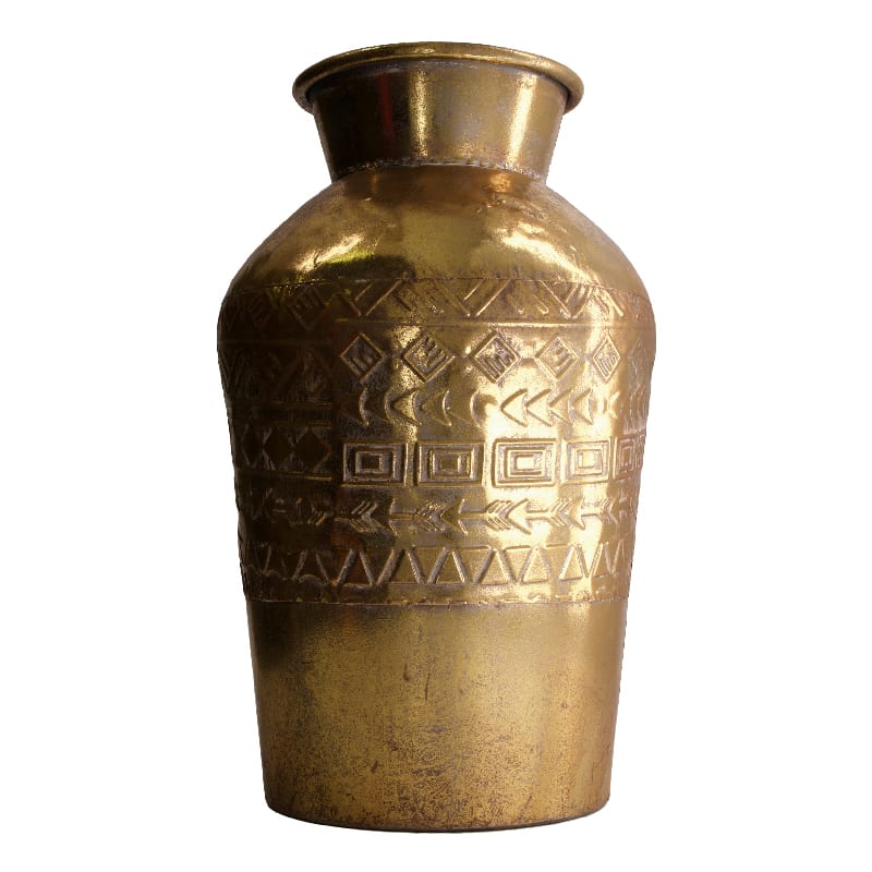 Vaas metallist, antiikse mustriga d25x38cm kuldne