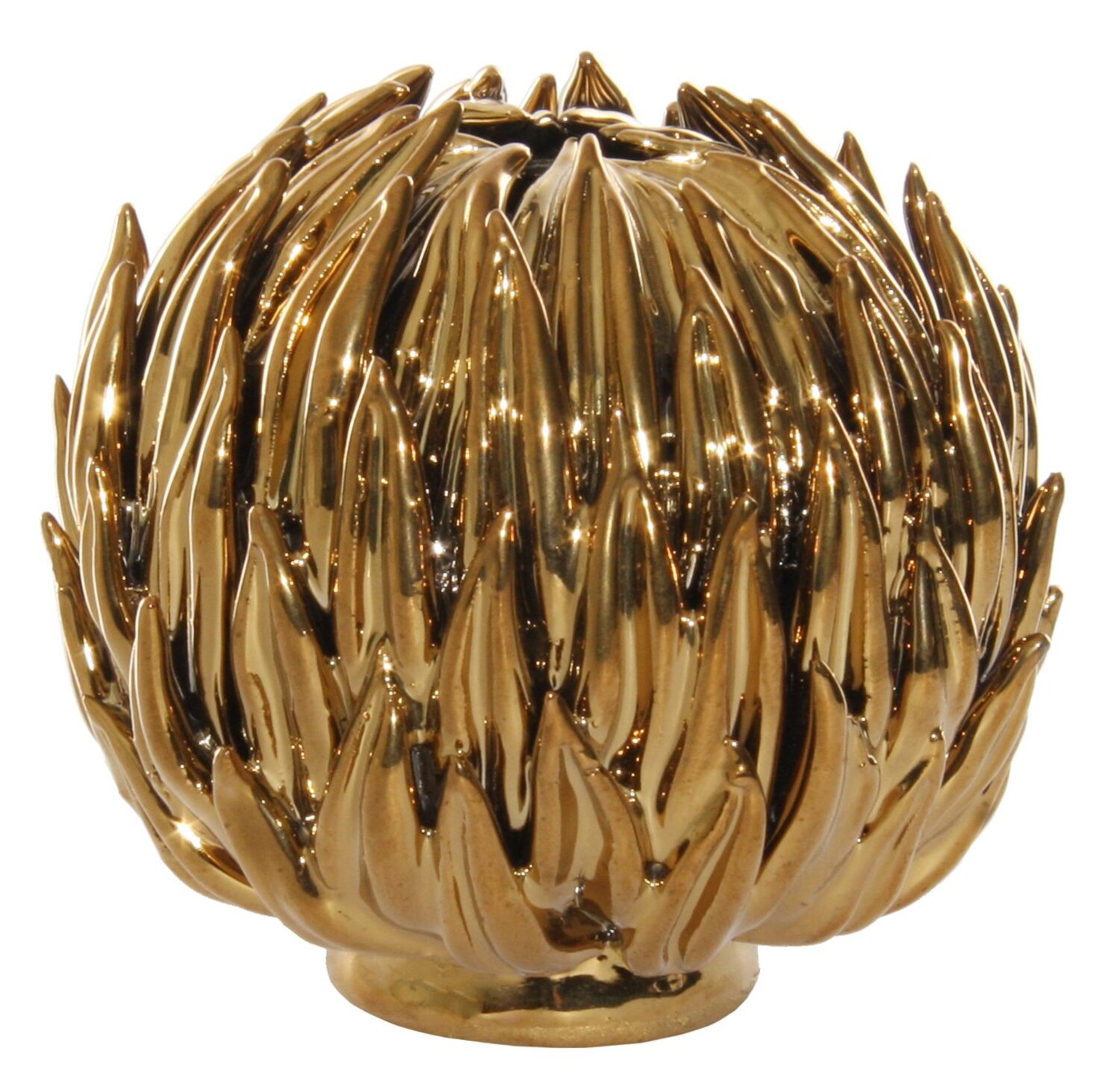 Väike, kuid silmapaistev vaas, mille vorm meenutab kuldset ohakapalli. Skulpturaalsed, teravatipulised lehed peegeldavad valgust eri suundades, muutes vaasi mõjusaks detailiks nii pidulikus kui modernses interjööris. Kaunis nii üksikuna kui ka teiste sisustuselementide kõrval.