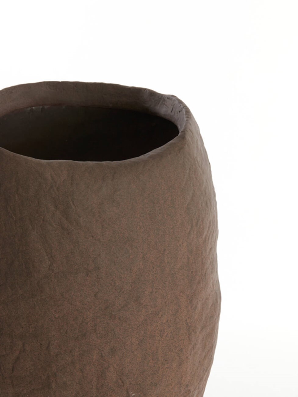 Vaas Tingri on kõrge ja skulptuurne dekoratiivvaas, mille orgaaniline kuju ja kare kivipind loovad käsitööliku ning naturaalse mulje. Sügav pruun toon lisab interjööri soojust ja maalähedust, sobides hästi nii modernse, boho kui ka rustikaalse sisustiiliga. Kõrgem vorm teeb vaasi ideaalseks pikkadele okstele, kuivlilledele või iseseisva sisustuselemendina.