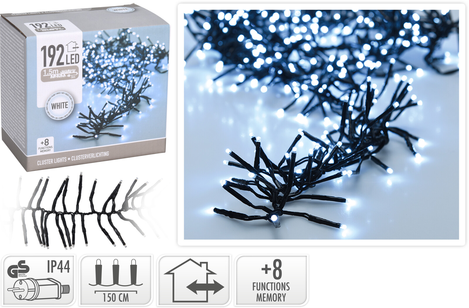 Hooajakaubad Valguskett 1,5m 192LED külm valge IP44
