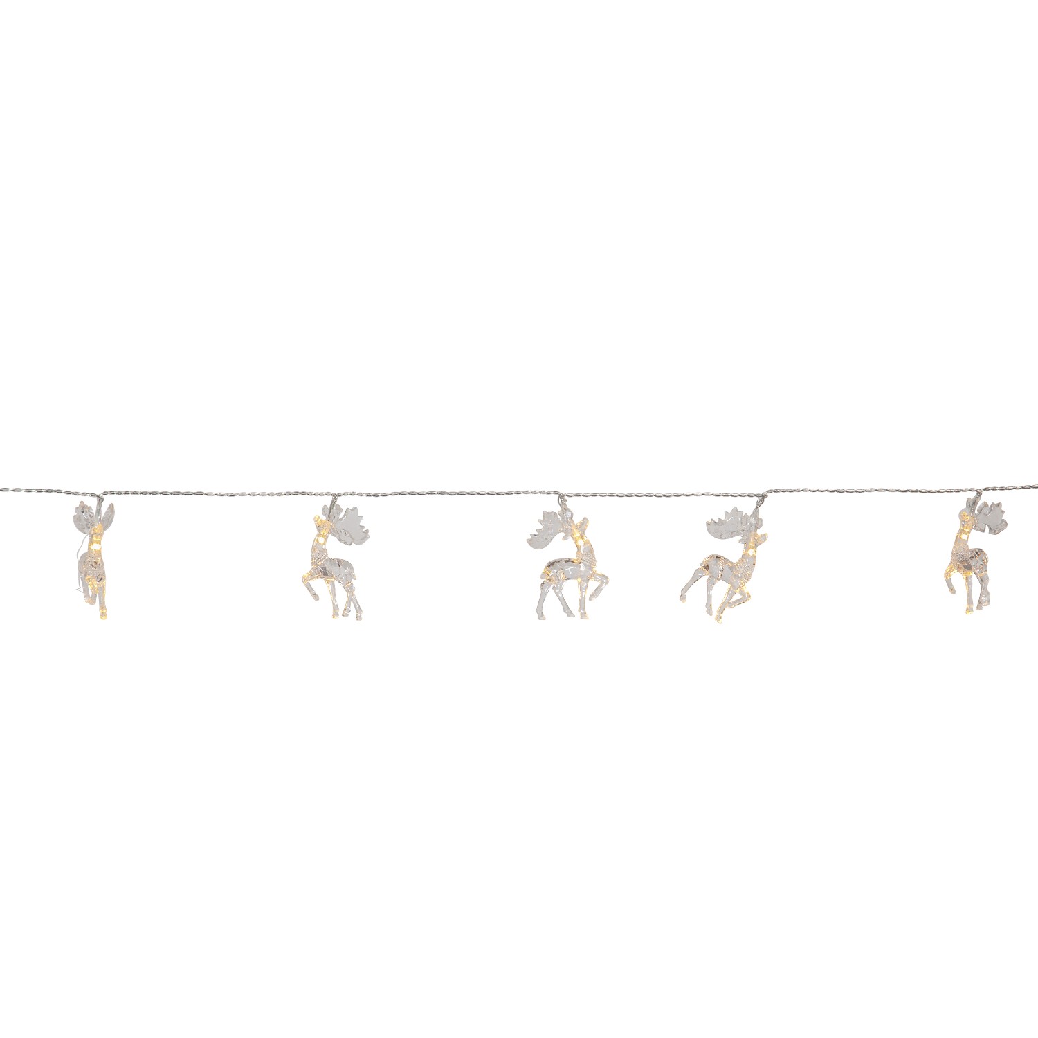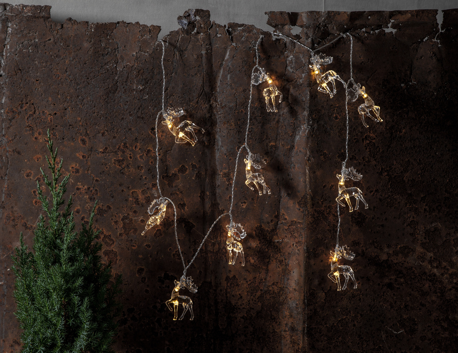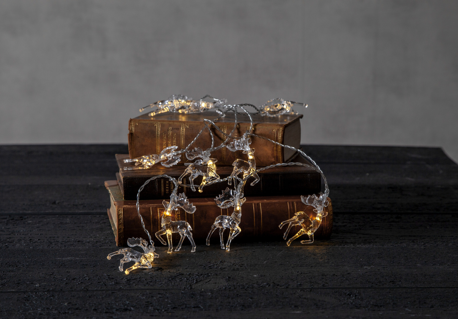 Patareitoitel valguskett Izy läbipaistvate põhjapõdrakujukestega, mis loovad sooja ja hubase valguse. Sobib hästi jõulupuule, aknalauale või lauale kaunistuseks, lisades interjöörile mängulisust ja valgust.