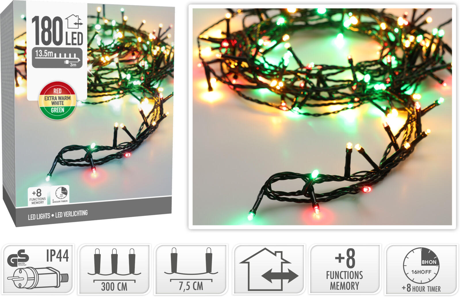 Valguskett kolmevärviline 13,5m 180LED IP44