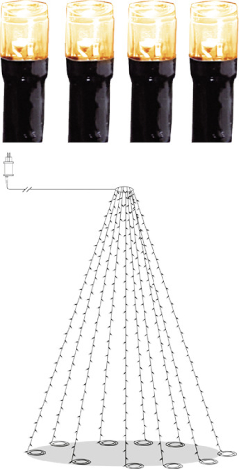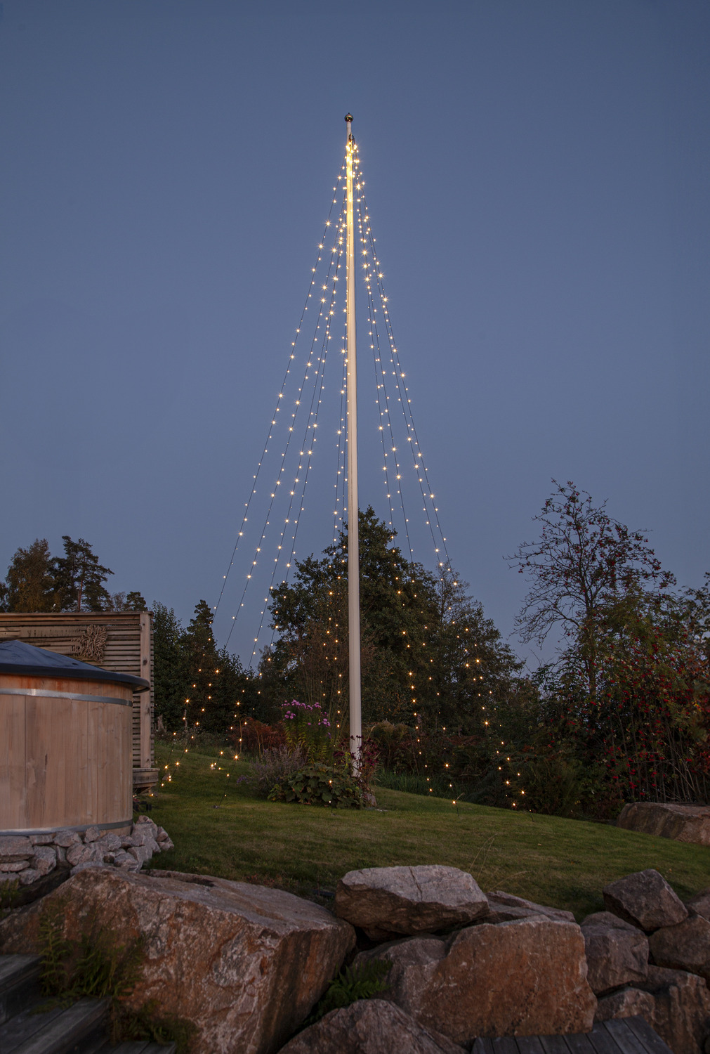 Muljetavaldav valguskett lipumastile loob efektse valguspuu, mis toob särtsu aeda või hoovi. Komplektis on 10 haru, igas 50 sooja valget LED-tuld, mis valgustavad ala pehme ja ühtlase helgiga. Kett on varustatud taimeri ja hämardusfunktsiooniga, mis võimaldavad valguse tugevust ja tööaega mugavalt reguleerida. Sobib suurepäraselt lipumastile või suurele õuekuusele.