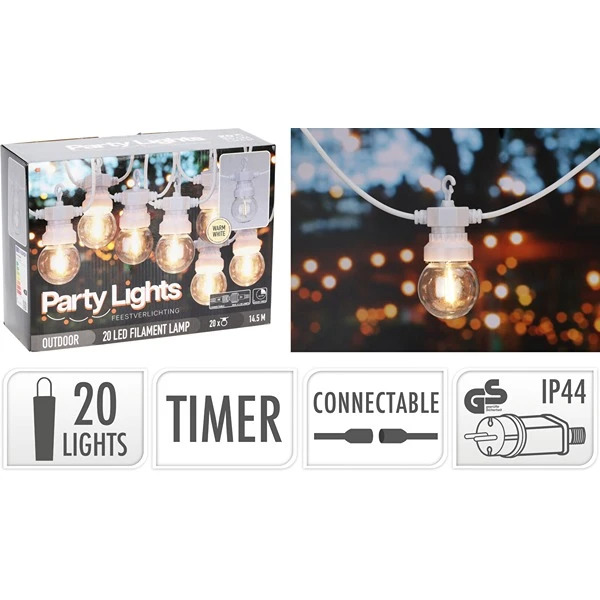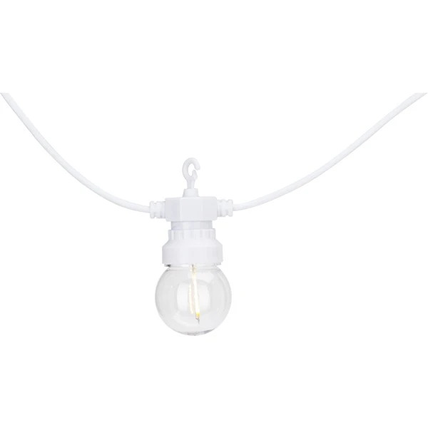 Õdus ja dekoratiivne valguskett loob hubase meeleolu nii igapäevastes hetkedeks kui ka pidulikeks sündmusteks. Soe valge valgus, klassikaline disain ja valge kaabel sobituvad erinevatesse keskkondadesse – terrassile, rõdule, aeda või talveaeda.